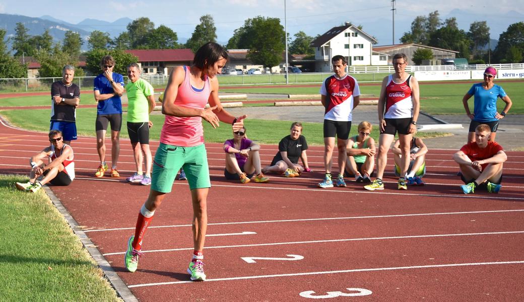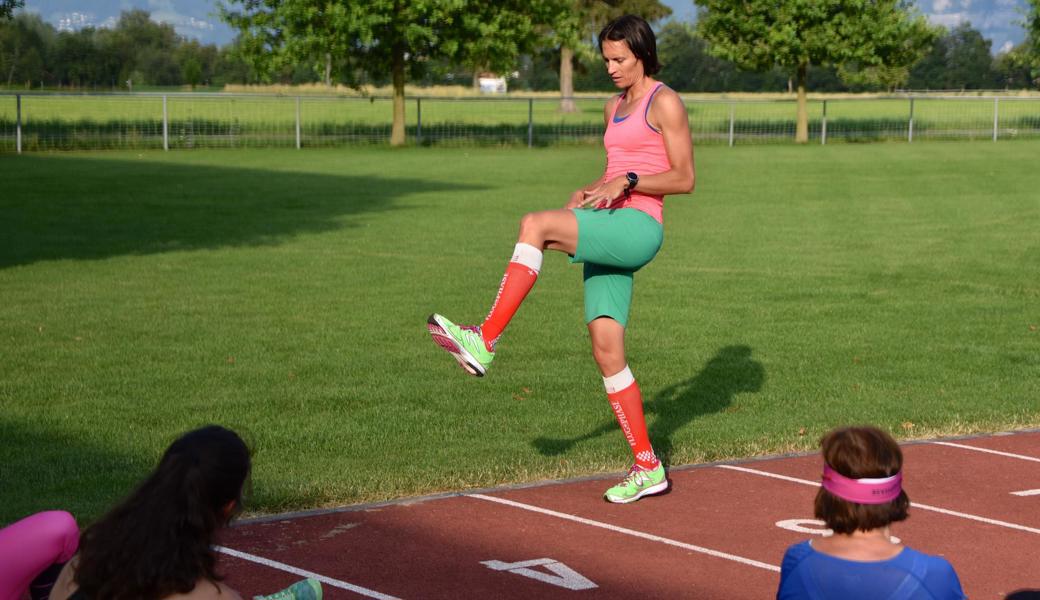 «Dieses Seminar gab mir die Zuversicht, dass ich noch Potenzial habe, mehr herauszuholen», sagte Teilnehmer Norbert Amann. Besonders eindrücklich sei, welches Gewicht der Flexibilität in der Hüfte und der Stabilität in der Körpermitte beim Laufsport zukomme. Darauf legt der Mittwochsläufer in Zukunft einen Fokus, trainiert das etwa mit Yoga.Dies freut Kursleiterin Larissa Kleinmann: Sie sagte, Yoga sei als Ganzkörpertraining für jeden Läufer unentbehrlich und empfahl, es zumindest einmal zu versuchen. «Ihr seid ja hier, weil ihr für Veränderungen offen seid. Und das ist toll», sagte die Deutsche, deren Schulungskonzept mit dem Namen Flugphase auf fünf Faktoren basiert.Faktor eins heisst: Das Bein unter dem Körper fallen lassen, keine Energie verschwendende lange Schritte nach vorne zu machen. Faktor zwei: Die Ferse beim Laufen hinten hoch schwingen zu lassen, weil diese Bewegung wegen der Nähe zur Hüfte weniger Energie verbraucht. Der dritte Faktor ist die Flugphase: Rund 70 Prozent der Laufzeit verbringe man in der Luft. Das sei Entspannungszeit, die Flugphase bringe Zeit zur Regeneration während der Aktivität. Die Hüfte stets aktiv nach vorne zu schieben, Faktor vier, sei wichtig, weil so dank der Erdanziehungskraft und einem besseren Abdruckwinkel am Fuss «gratis» Geschwindigkeit genutzt werden könne. Bei Faktor fünf riet sie den Teilnehmenden, kürzere, dafür mehr Schritte zu nehmen. Beachteten Läufer diese Punkte, sei es möglich, die Zeit pro Kilometer stark zu senken. Die Kursteilnehmer testeten diese Inputs direkt vor Ort. Vielen schien es so, als würden sie eher mehr als weniger Kraft brauchen. Das Training brauche aber Zeit, es sei gar nicht möglich, den Laufstil so rasch so stark zu verändern. Und auch gar nicht erwünscht, schliesslich steige bei zu progressivem Training die Verletzungsgefahr. «Geht es ruhig an, gebt euch Zeit», riet Larissa Kleinmann.Wichtig, ja entscheidend sei die Schuhwahl: Flache, wenig gedämpfte, stabile Schuhe würden den Athleten zu einer effizienteren Laufweise zwingen. Unpassend, so die äusserst wortgewandte Leiterin, seien «High-Heel-Matratzen», wie sie Schuhe mit hoher Ferse bezeichnet: Diese würden den Läufer zum kräfteraubenden und gelenkstrapazierenden Fersenlaufen zwingen.Larissa Kleinmann brachte ihr Konzept so auf den Punkt: «Laufen ist fliegen. Ich möchte, dass ihr fliegt, wie eine Gazelle!» So mache es – und das sei sehr wichtig – auch mehr Spass. Die gut 30 Teilnehmer, etwa 25 Mittwochsläufer und einige Gäste, nahmen sich die vielen Ratschläge zu Herzen und waren mit dem Seminar zufrieden. «Auch schon bekannte Dinge wurden eindrücklich mit Hintergründen und Zusammenhängen erklärt, dass es leicht verständlich war», sagte Norbert Amann.