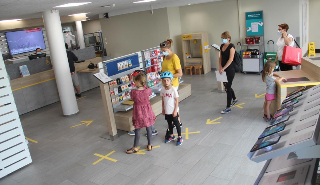 «Frischer Look und neue Dienstleistungen» titelt die Post in der Medienmitteilung zur modernisierten Altstätter Filiale. Der neu zur Verfügung stehende Einwurf für versandfertige Päckli mit Barcode wird bereits rege benützt. Allein am Freitagmorgen füllten die hier aufgegebenen Pakete einen grossen Behälter.[caption_left: Teamleiterin Caroline Hasler und Thomas Schifferle, Verantwortlicher regionale Kommunikation Ost.]40 Mio. für rund 300 FilialenLandesweit investiert die Post 40 Mio. Franken in rund 300 moderne, von ihr selbst betriebene Filialen. Im Rheintal ist jene in Altstätten die erste. Neue Elemente sind eine Informationstheke, eine Kinderecke (Kinderpost) und eben der Paketeinwurf. Dafür ist die Zahl der in der Kundenhalle angebotenen Artikel stark verringert worden.Den Platz nutzt die Post künftig lieber für mehr Kundennähe: Das Personal gibt an der neuen Infotheke Auskunft zu Dienstleistungen, berät und informiert. «Gerade in Zeiten der Digitalisierung» sei ihr dies wichtig, schreibt die Post.Mit ihrer neuen Strategie «Post von morgen» werde «das Filialnetz stabilisiert» und mit schweizweit rund 800 selbst betriebenen Filialen fortgeführt. Gleichzeitig öffnet die Post ihre Filialen für Dienstleister aus den Branchen Banken, Versicherungen, Krankenkassen oder für Behörden. Allerdings ist man noch in der Versuchsphase. Zumindest vorerst wird in der Altstätter Postfiliale noch kein anderer Dienstleister vertreten sein.Unteränderte ÖffnungszeitenDie bisherigen Postdienstleistungen bestehen alle weiter, auch die Öffnungszeiten sind unverändert. Teamleiterin Caroline Hasler sagt, sie werde öfter nach dem vorübergehend betriebenen (und schliesslich abgeschafften) Ticketsystem gefragt; dieses werde nicht wieder eingeführt.Die weiterhin drei zur Verfügung stehenden offenen Postschalter sind neu ums Eck angeordnet.Das von Caroline Hasler geleitete Team besteht aus 16 Mitarbeiterinnen und Mitarbeitern, die abwechselnd in den vier von der Post betriebenen Filialen von Widnau, Altstätten, Oberriet und Grabs eingesetzt werden. Zwischen Widnau und Oberriet hat die Post zudem sieben Geschäftsstellen, die sie zusammen mit Partnern (Beck, Lebensmittelladen usw.) betreibt. Ferner bestehen im genannten Gebiet vier Aufgabe-/Abholstellen und zwei Geschäftskundenstellen.