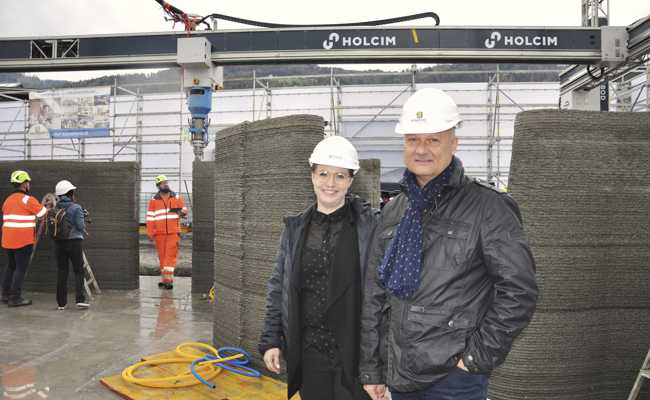 AnmeldenMittels 3D-Betondrucktechnologie entsteht bei der Kobelt AG in Marbach ein neues Gebäude. Es ist das erste dieser Art in der Schweiz. Realisiert wird das Projekt zusammen mit dem Zementkonzern Holcim.