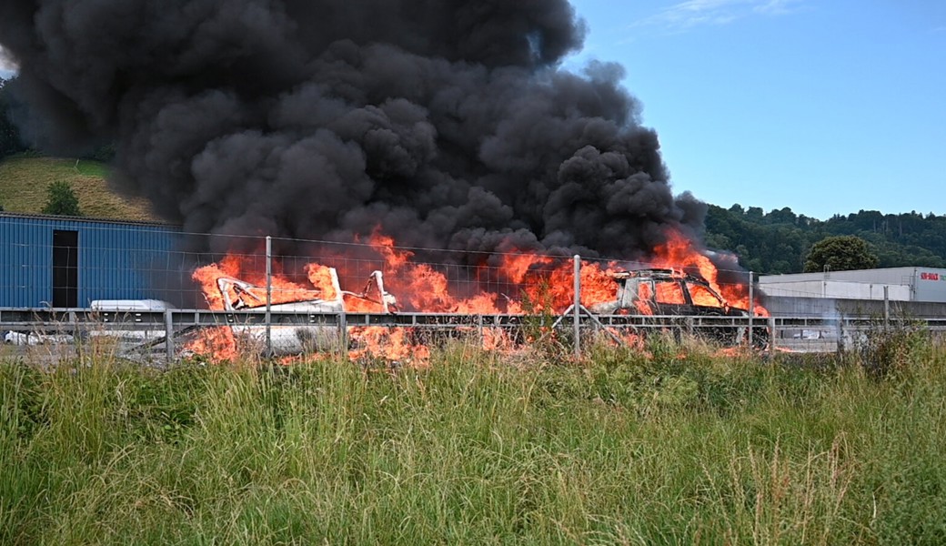 Ein derartiger Brand stellte eine akute Gefahr dar, weshalb der Verkehr zwischenzeitlich angehalten wurde – «bis die grössten Löscharbeiten abgeschlossen sind», sagte Florian Schneider.