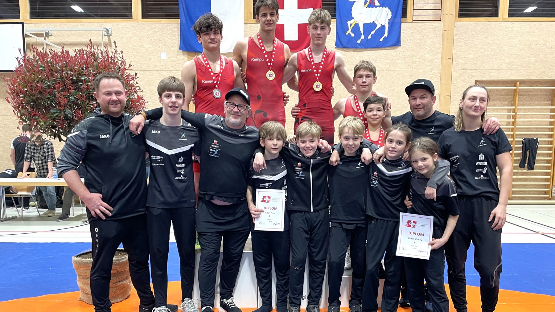 Mit elf Ringerinnen und Ringern reiste der Ringerclub Oberriet-Grabs nach Schötz. Sie massen sich dort mit der nationalen Konkurrenz und zeigten über weite Strecken starke Leistungen. Besonders erfolgreich verlief das Turnier für die Junioren Lio Rüegg bis 55kg und Mathys Sarrasin bis 65kg. Beide setzten sich in sehr gut besetzten Kategorien durch und sicherten sich souverän den Meistertitel. Auch Tinio Ritter zeigte sich bis 70kg stark: Er kämpfte sich bis in den Final vor und gewann am Ende die Silbermedaille.
