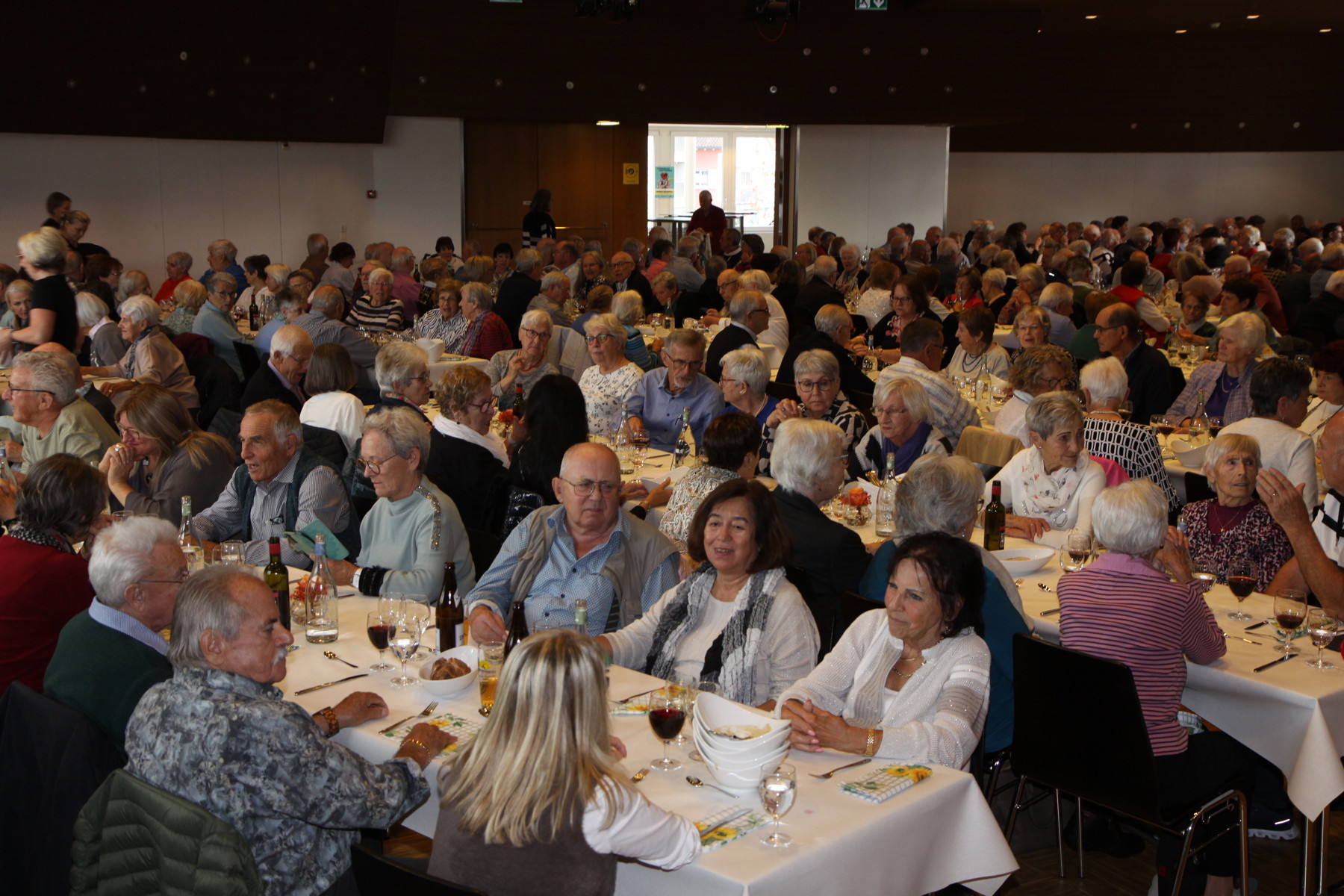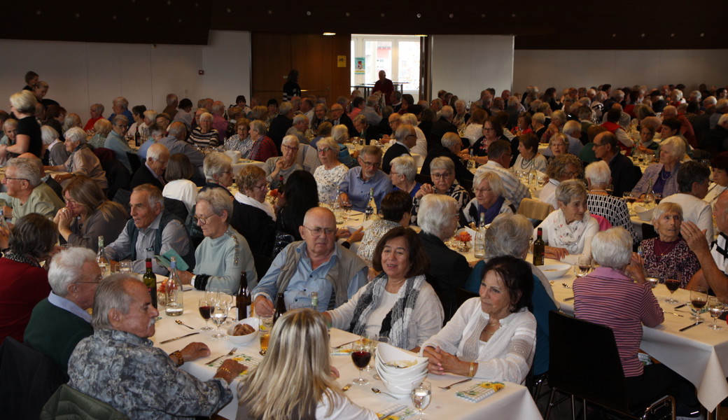 In diesem Jahr wurden 1020 Haushalte angeschrieben. Partnerinnen und Partner dürfen selbstverständlich auch teilnehmen, selbst wenn sie das 70. Lebensjahr noch nicht erreicht haben. Der «Metropol»-Saal war bis auf den letzten Platz besetzt: 375 Seniorinnen und Senioren genossen einen gemütlichen Nachmittag mit feinem Essen, anregenden Gesprächen und abwechslungsreicher Unterhaltung.
