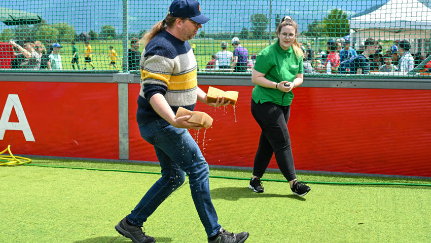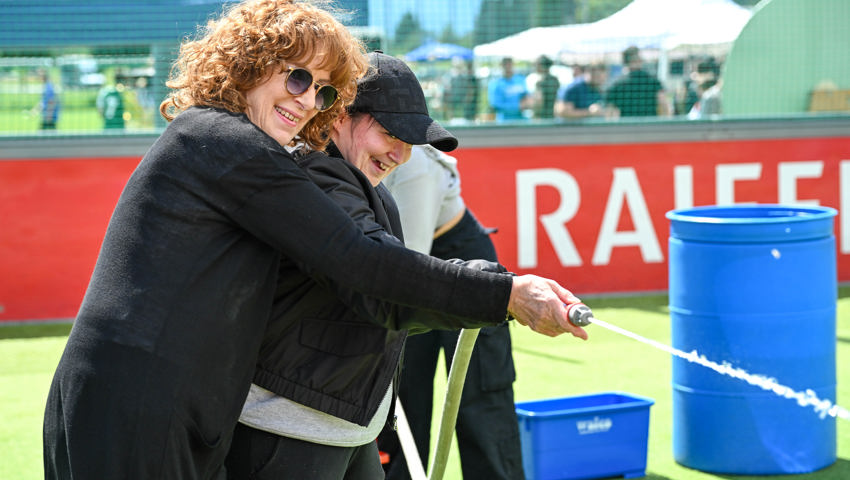 Dabei waren auch drei Mitarbeiterinnen der St. Galler Kantonalbank, die den Bürotisch gegen den Spiel- und Sporttag tauschten. Ylenia Rizzuto und Anina Dörig betreuten den Posten, bei dem es galt, möglichst viel Wasser mit Schwämmen von einem Tank in den anderen zu transportieren. «Ich bin vom Anlass sehr positiv überrascht», sagte Rizzuto. Dörig:
