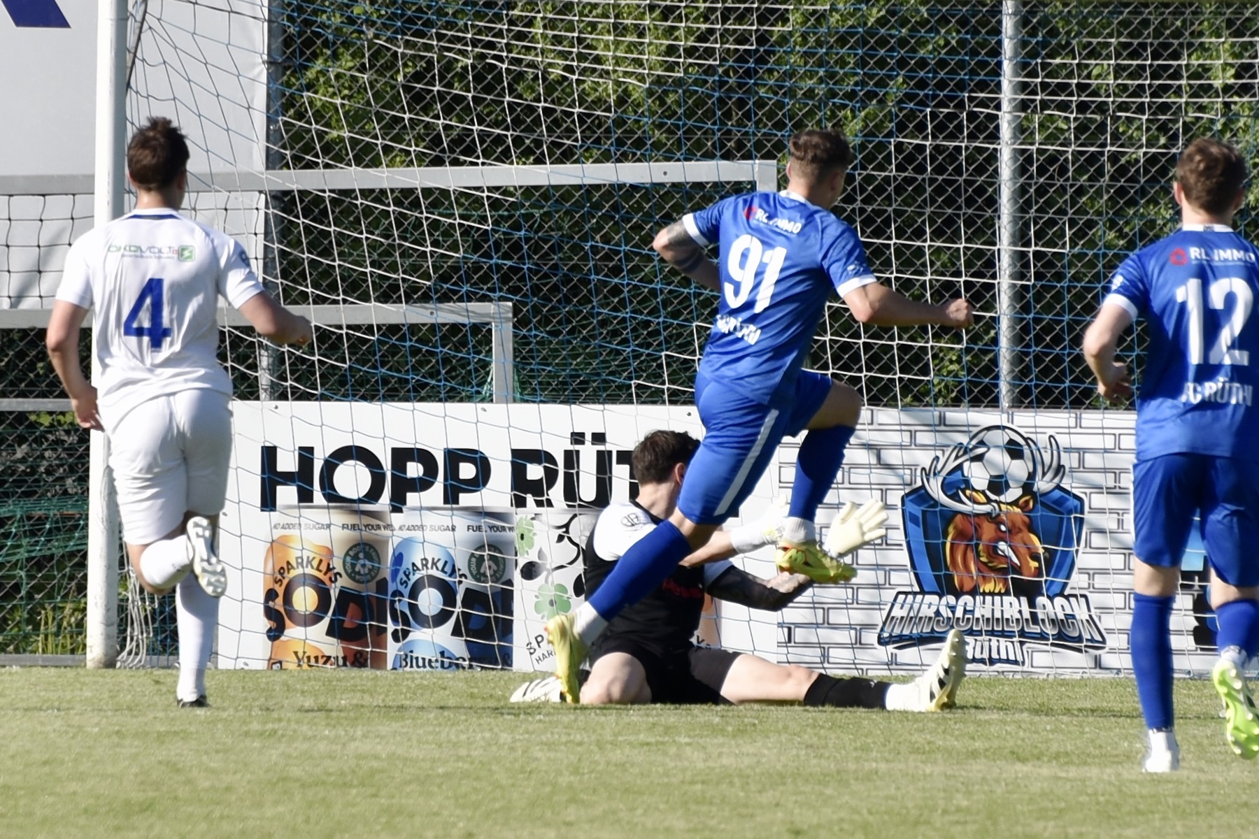 Auf dem Rheinblick waren drei Minuten und neun Sekunden gespielt, da nahm Au-Berneck-Captain Mario Zivic von der Seite Anlauf zu einem Freistoss. Und er verwandelte diesen sehenswert zum 1:0 für seine Mannschaft – klar, Joel Eugster im Rüthner Tor war nicht komplett von der Schuld freizusprechen, doch der Schuss war so platziert, dass es übertrieben wäre, das Tor nur dem Goalie zuzuschreiben.