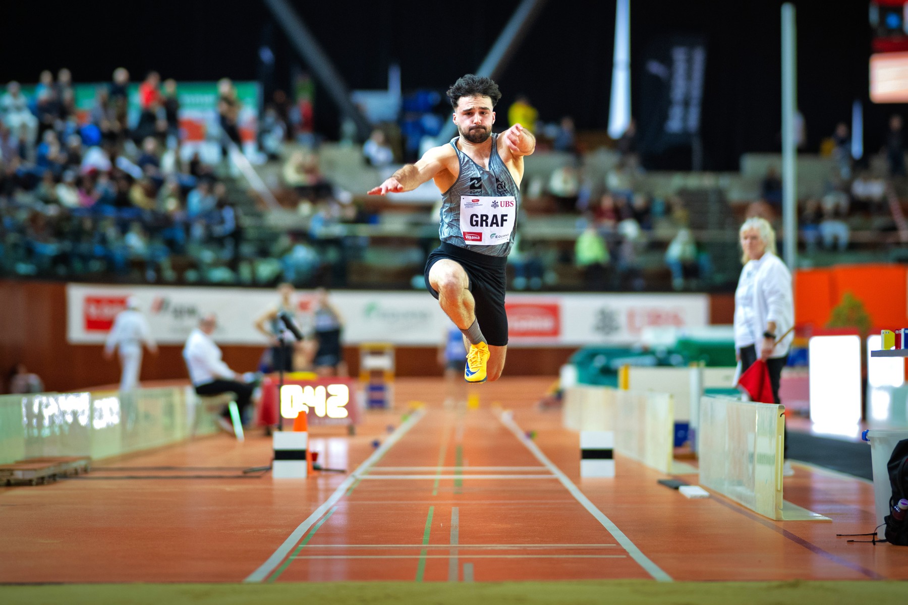 Der bald 23-jährige Sandro Graf wurde seiner Favoritenrolle im Dreisprung gerecht. Von Beginn an übernahm er die Führung und sprang mit allen sechs Versuchen weiter als seine Gegner. Vier Versuche gingen über 15 Meter und er übersprang seine alte Bestweite von 15,14m. Seine Serie war: 14,61m, 15,16m, 15,45m, 14,98m, 15,23m und nochmals 15,23m. Mit 15,45 Metern ist Graf nun in der Halle der zwölftbeste Schweizer Dreispringer aller Zeiten – auf das Podest fehlen noch 40cm. Zudem überbot Graf mit dieser Weite den 45-jährigen Indoor-Vereinsrekord von Markus Pichler um vier Zentimeter.