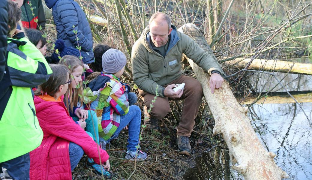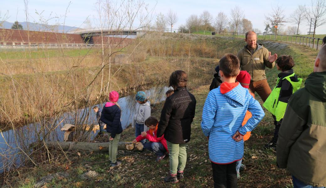 Hildegard Bickel«Riecht mal», fordert Mirko Calderara die Kinder auf. Der Wildhüter steht am Ufer des Sickerli und hält ein Schlammhäufchen in den Händen. Die Kinder der dritten Klasse von Heinz Köppel kommen vorsichtig näher und lernen den strengen Geruch des Sekrets Bibergeil kennen. Damit markieren Biber ihr Revier und pflegen ihr Fell. Das Sekret, das in den Drüsensäcken der Biber hergestellt wird, dient auch als Parfum in der Paarungszeit.Die Kinder folgen Mirko Calderara weiter zu den Bauwerken, die der Biber am Sickerli erschaffen hat. Die Dämme und abgenagten Äste lassen die Mädchen und Buben staunen. Doch es können auch Probleme entstehen. Dann, wenn es wegen der Biberbauten im Sickerli zu einem Rückstau kommt und in der Nähe der Autobahn die Hochwasser-Entlastung nicht mehr gewährleistet ist. In solchen Fällen müssen die Hölzer aus dem Bach geholt werden.Lehrer Heinz Köppel ist begeistert vom anschaulichen Unterricht in der Natur. «Hier draussen können die Kinder mit allen Sinnen ein Thema erleben.» Der Biber gefällt den Schülern besonders wegen seiner starken Zähne und seines Schwanzes, genannt «Kelle», wie sie fachmännisch erklären.Ein Stück Natur im SchulhausSeit 2006 erobert der Biber das Rheintal zurück. Dass sich eine Biberfamilie am Sickerli ausbreitete und mittlerweile den Ruf als Touristenbiber und Dorfbiber geniesst, nahm Heinz Köppel zum Anlass, sich vertieft mit dem grössten Nagetier Europas zu beschäftigen. Er begab sich auf Exkursionen und Foto- und Filmsafaris von Fussach bis Oberriet. «Das macht man, wenn man selber Fan ist», sagt der naturverbundene Pädagoge. Seine Frau, Handarbeitslehrerin Claudia Savary, begleitete ihn geduldig und interessiert. Sie unterstützte ihn anschliessend während unzähliger Stunden, als Heinz Köppel im Flur des Schulhauses Schlatt eine Ausstellung gestaltete.Es entstand eine liebevoll und umfangreich hergerichtete Lernlandschaft rund um den Biber. Schilf, Holz für den Biberdamm, sogar einen Baum mit typischen Frassspuren holte Köppel ins Schulhaus, mit Hilfe der Realklasse seines Bruders Hannes Köppel. Die ausgestopften heimischen Vögel und Kleintiere sind Leihgaben des Naturmuseums St. Gallen. Auf Infoplakaten sind kindgerechte Texte verfasst, ergänzt mit Fotos der Wildkameras, die den nachtaktiven Biber bei Streifzügen zeigen. Klassen vom Kindergarten bis zur Oberstufe kamen bereits zu Besuch und vertieften sich ins Thema.Auch Lehrerkollegen liessen sich vom Biberfieber anstecken. Zwei von ihnen konnten das Tier zufällig bei Tageslicht fotografieren. «Sensationell», sagt Köppel. «Doch es gehört Glück dazu.» Selber war es ihm bisher nicht vergönnt, einen Biber zu sehen.Geschützter Status, wie lange noch?Der Biber und sein Lebensraum sind in der Schweiz zurzeit geschützt. Falls das Zusammenleben von Biber und Mensch jedoch eng werde und zu ernsthaften Problemen führe, könnte eine Änderung auf Bundesebene nötig werden, sagt Wildhüter Mirko Calderara. Es fehlen natürliche Feinde des Bibers und es besteht Konfliktpotenzial in der Landwirtschaft, wenn Biber Meliorationskanäle stauen und die Böden nicht mehr entwässert werden. «Hingegen birgt eine Biberfamilie wie am renaturierten Sickerli enorm viele Chancen», sagt Mirko Calderara. «Der Biber ist ein Landschaftsarchitekt, er gestaltet Lebensräume, wovon auch andere Tiere und Pflanzen profitieren.»HinweisDie faszinierende Biber-Ausstellung ist während den Unterrichtszeiten zugänglich. Schulhaus Schlatt Widnau, erstes Obergeschoss. Besuche sind möglich bis zu den Herbstferien.