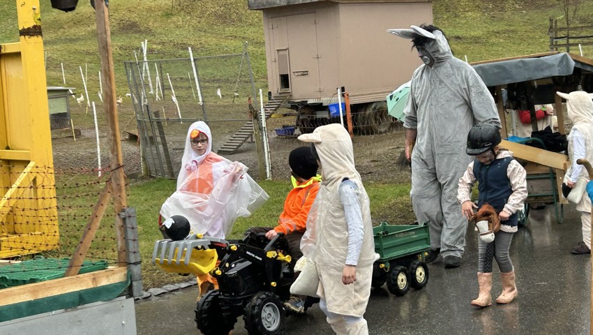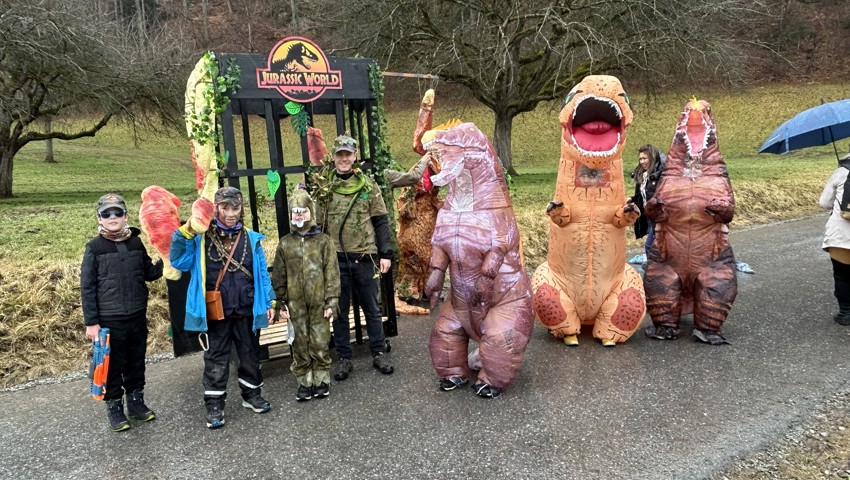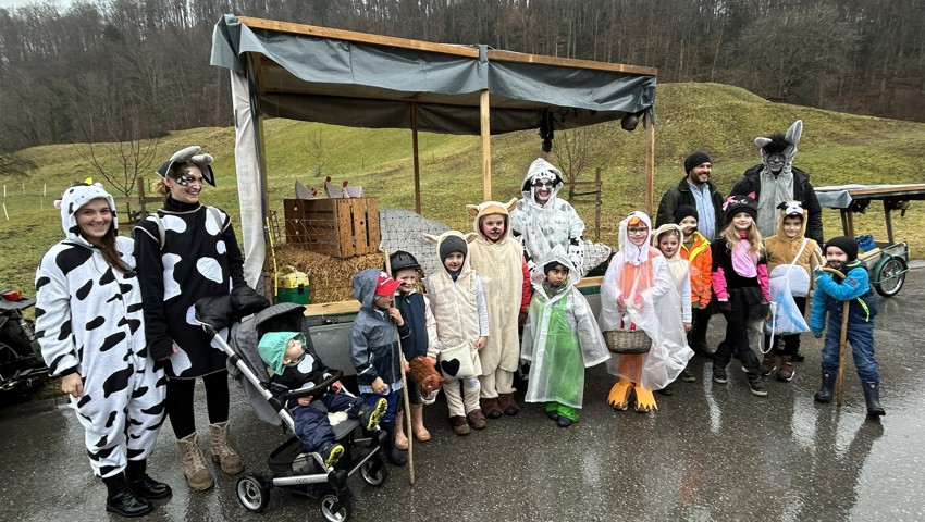 Wer beim ersten Durchmarsch etwas verpasst hatte, erhielt eine zweite Chance. Die Gruppen zogen zuerst auf der Bergstrasse durchs Dorf, umrundeten die Kirche und kamen dann ein zweites Mal beim Dorfplatz vorbei.
