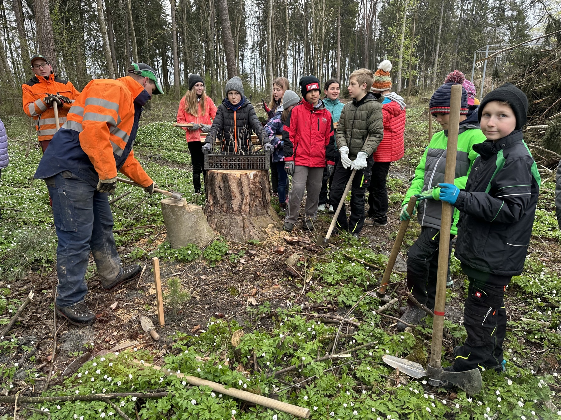 AnmeldenNachdem Anfang Jahr viele Bäume gefällt worden waren, pflanzten Fünftklässler am Montag rund 100 neue Bäume.