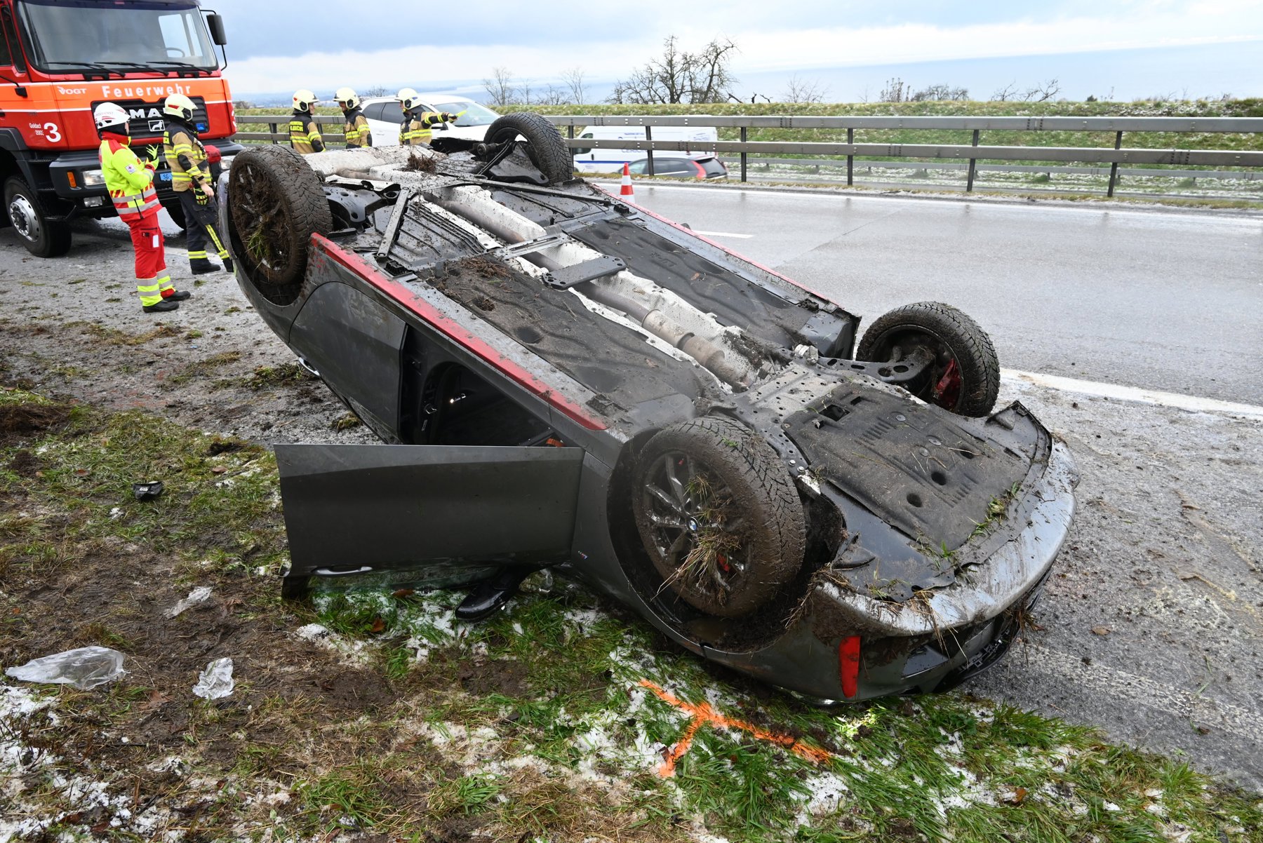 Schwer verletzt nach Selbstunfall: Ein 25-jähriger Autofahrer verliert die Kontrolle auf der A1