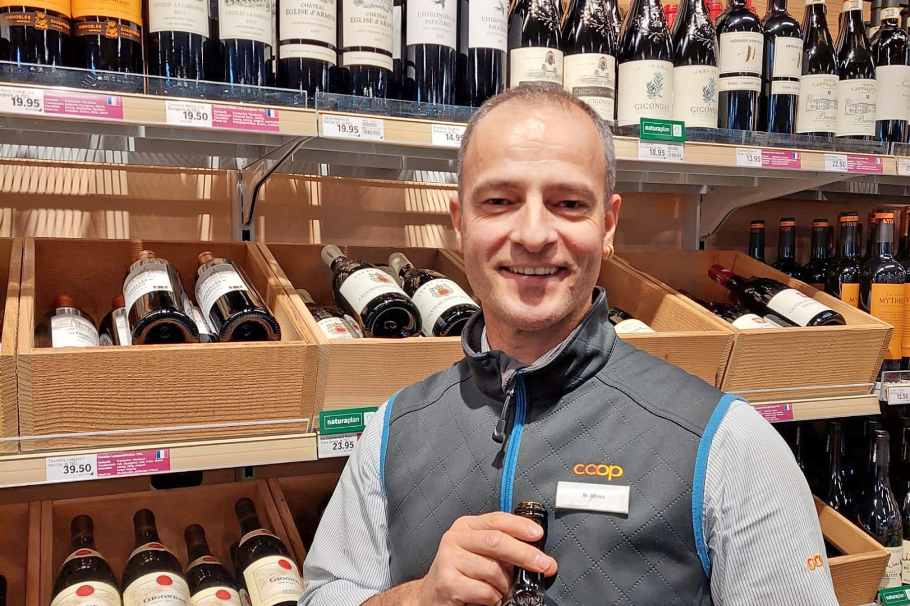 Sein Wissen, kombiniert mit Weiterbildungen, brachte ihm schliesslich die Beförderung zum Rayonleiter ein. «Mir gefällt es sehr, jeden Tag Weine und Spirituosen auszustellen und sie möglichst gut zu präsentieren. Ich sehe es jeweils bildlich vor meinem inneren Auge und setze es sofort um.» Auch den Kundenkontakt schätzt Mauro Ornelas Abreu an seiner täglichen Arbeit.
