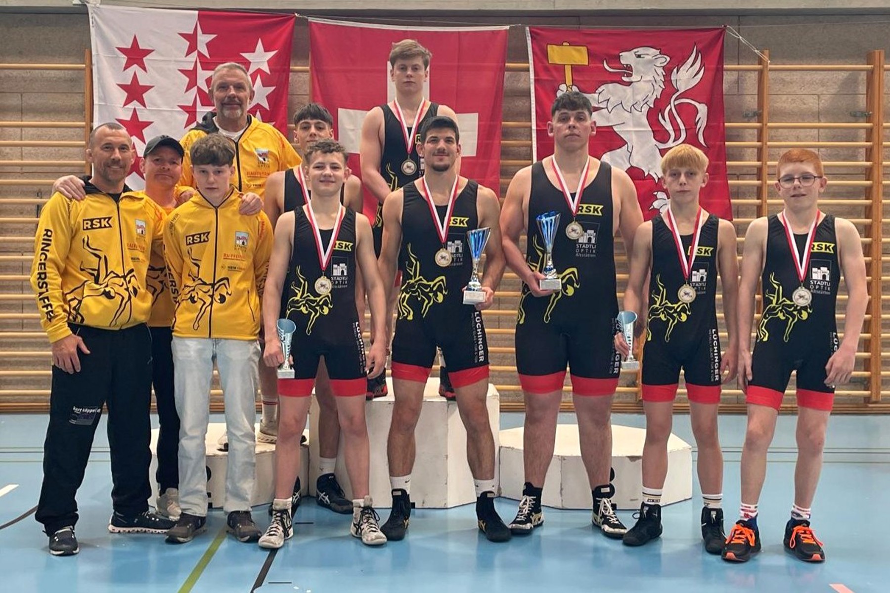 In der Klasse bis 47kg stellte die RSK mit Lee Dietschi und Luka Streck die Hälfte der Teilnehmer. Nachdem die Rheintaler mit je zwei Siegen zeigten, wer das Sagen hat, setzte sich Dietschi im internen Duell gegen Streck durch und holte den Meistertitel. Für Streck gab es Silber. Bis 53kg war es Nico Gächter, der einen beeindruckenden Start-Ziel-Sieg auf die Matte zauberte. Im hart umkämpften Final gegen Fion Uhlmann von den Willisau Lions sicherte sich der Kriessner mit einem 9:8 den Meistertitel.