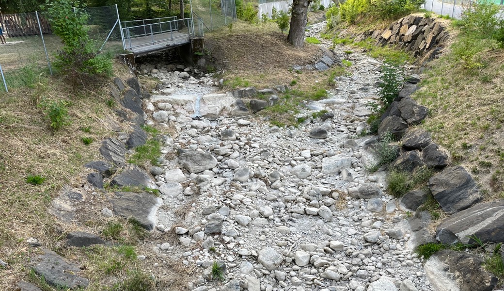 Erst war es lange trocken, dann extrem nass, jetzt ist es staubtrocken: Hier in Altstätten, wo sich grad unter dem Freibad Gesa der Donnerbach mit dem Tobelbach zum Kesselbach vereinigt, lagen am Samstag noch wenige Restpfützen. Jetzt ist der Bach nicht einmal mehr ein Rinnsal.