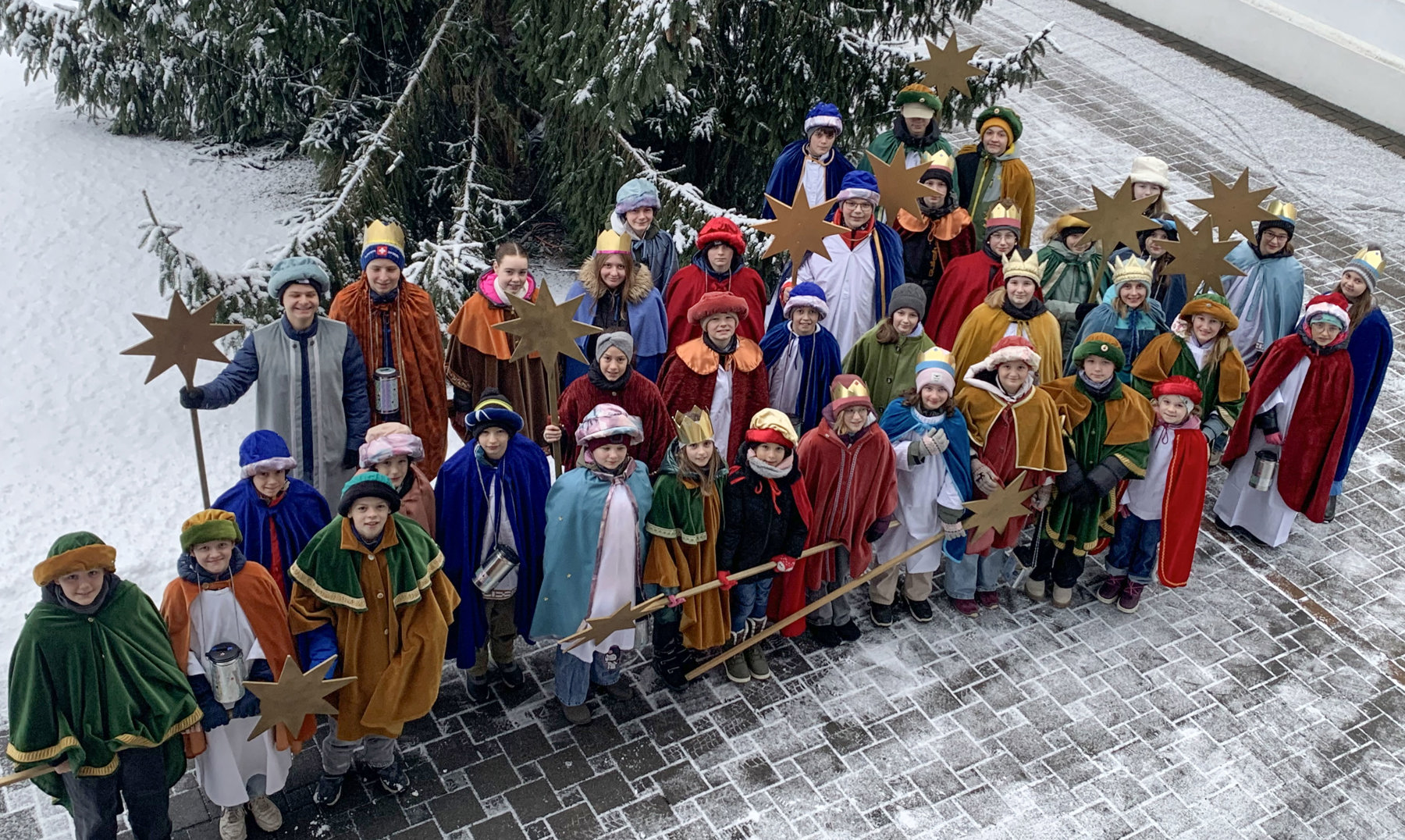 So marschierten 42 Sternsinger, mit königlichen Gewändern und Kronen gekleidet, von Haus zu Haus und trugen die frohe Weihnachtsbotschaft zu den Menschen. Sie sammelten in ihren Büchsen Geld für die Missio-Aktion Kinderrechte, für den Kriessner Missionar Pater Hugo Dietsche in Simbabwe sowie für das Gesundheitszentrum von Sr. Verona Hutter sel. in Tansania.