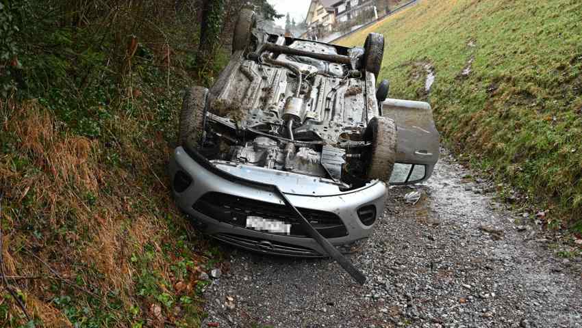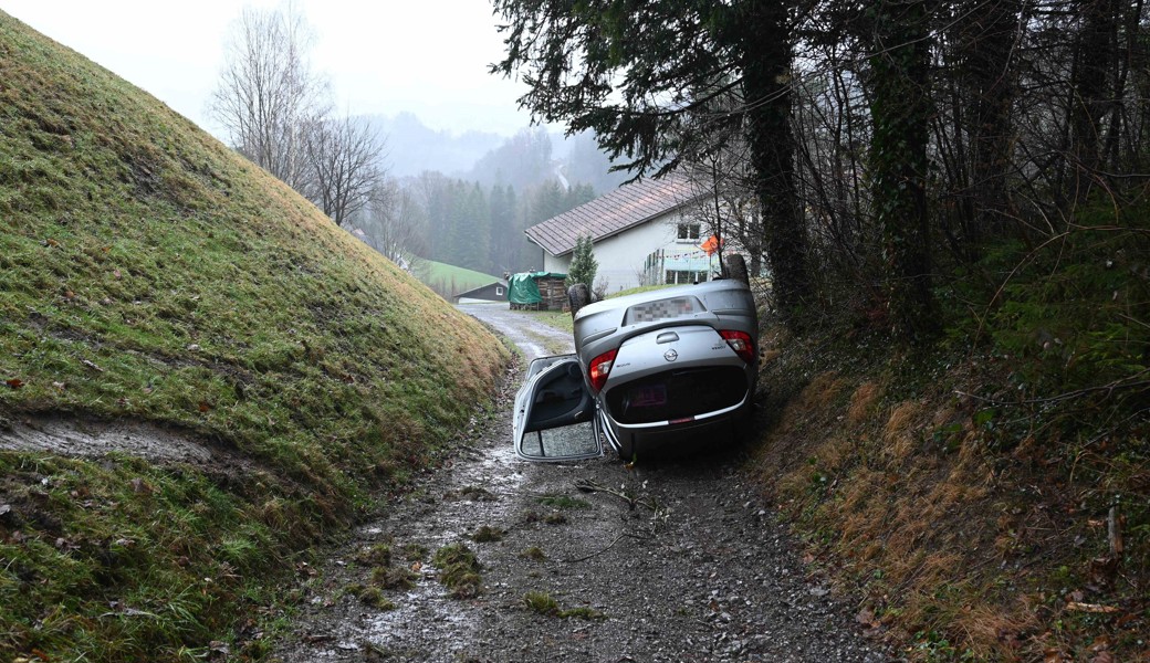 Über Stock und Stein: 83-Jährige kommt mit Auto von der Strasse ab und legt Dachlandung hin