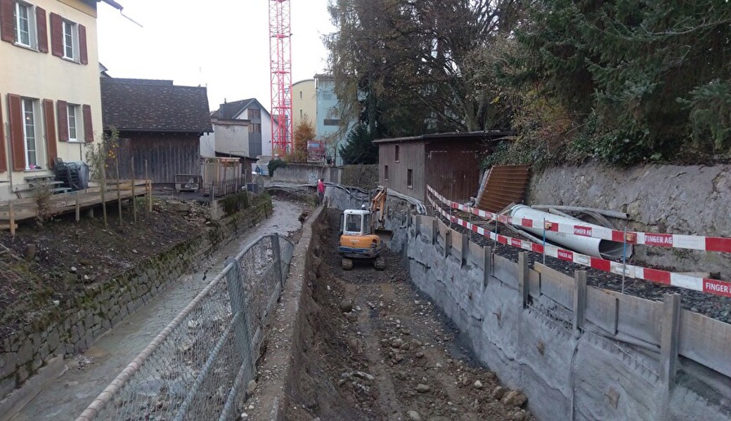 Parallel dazu wurde mit den Bauarbeiten entlang des Bachbetts begonnen. Bei den Grabarbeiten zeigte sich rasch, dass mehr Werkleitungen entlang des Brendenbachs geführt werden, als bis anhin bekannt war. Dies ist insbesondere aufgrund der engen Platzverhältnisse eine Herausforderung.