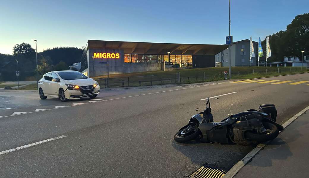 Der Rettungsdienst brachte ihn laut Mitteilung der Kantonspolizei Appenzell Ausserrhoden mit unbestimmten Beinverletzungen ins Spital. Der Autofahrer blieb unverletzt. Am Roller und am Auto entstand Sachschaden von einigen tausend Franken.