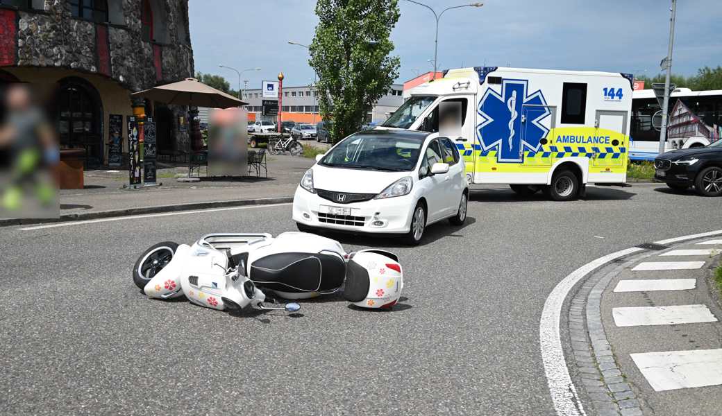 Eine 81-jährige Frau fuhr um 11.20 Uhr mit ihrem Auto auf der Hauptstrasse in Richtung Buriet und befuhr den Kreisverkehr. Gleichzeitig fuhr eine 56-jährige Frau mit ihrem Roller im Kreisverkehr. Dabei sind das Auto und der Roller zusammengestossen. Die 56-Jährige verletzte sich leicht. Der Rettungsdienst brachte sie ins Spital. Es entstand Sachschaden von rund 18'500 Franken.