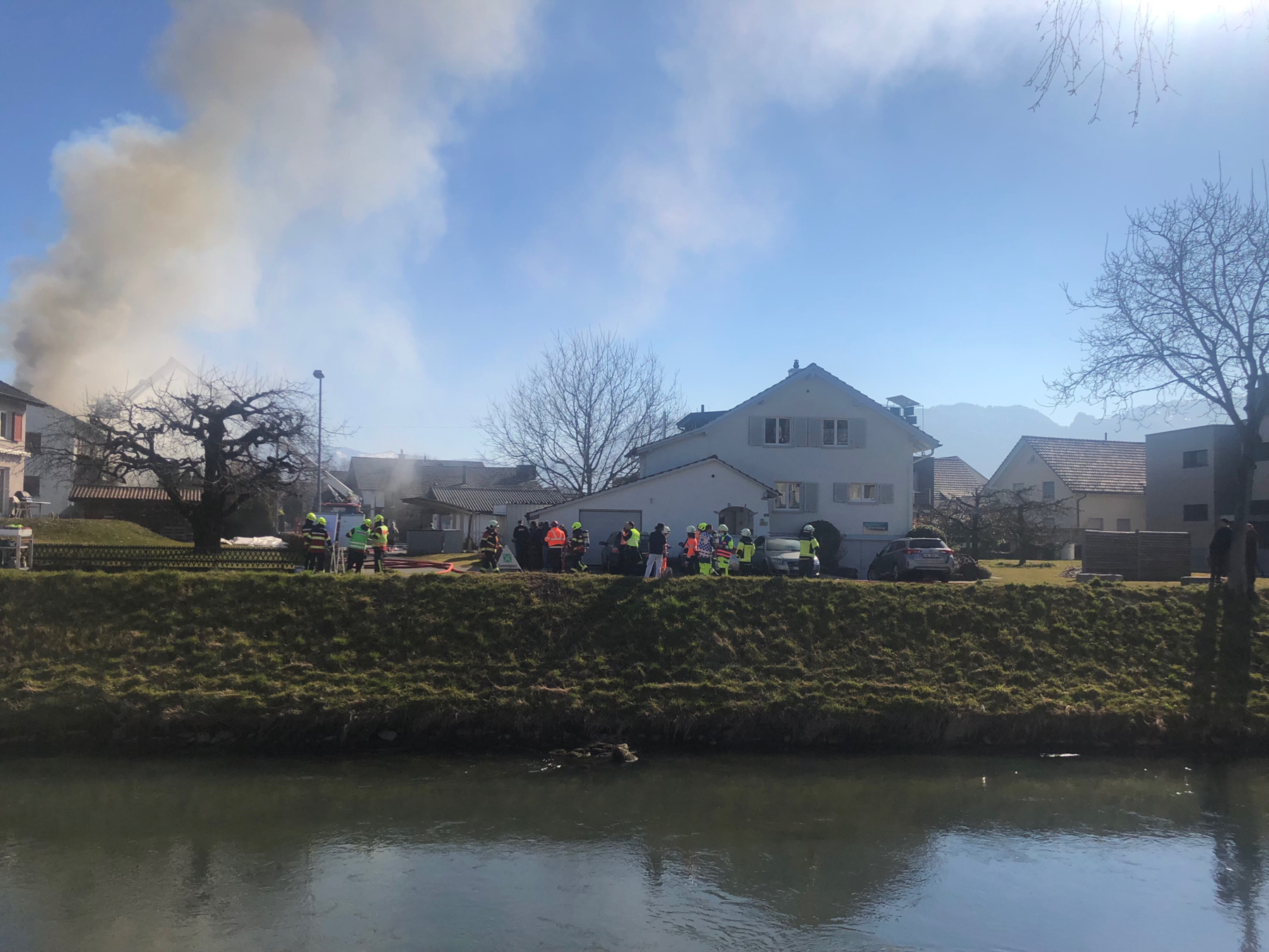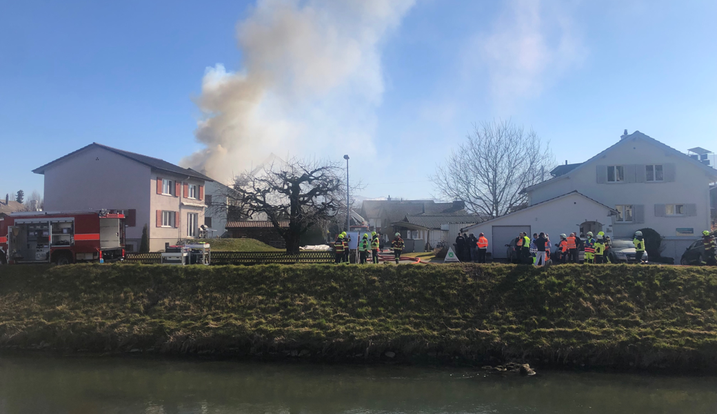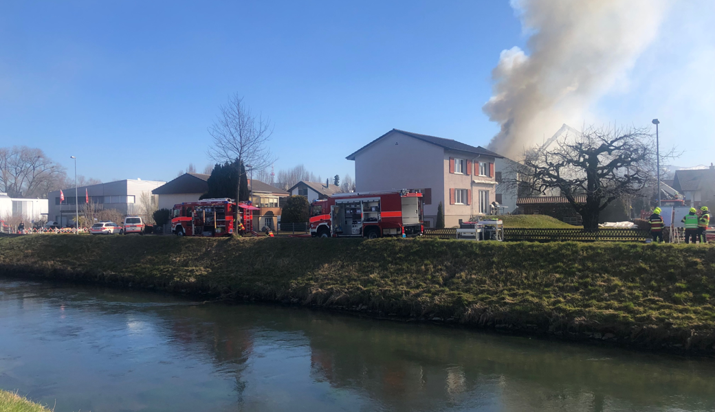 Im Dachstock eines Doppelhauses an der Lindenstrasse in Widnau ist am Donnerstagvormittag ein Brand ausgebrochen. Mehrere Anwohner meldeten sich aufgrund der Rauchentwicklung bei der Kantonalen Notrufzentrale. Beim Eintreffen der ersten Rettungskräfte schlugen bereits Flammen aus dem Hausteil der 80-Jährigen und kurz darauf stand dieser in Vollbrand. Die 80-jährige Frau konnte das Gebäude rechtzeitig verlassen. Sie wurde vom Rettungsdienst wegen einer möglichen Rauchgasvergiftung zur Kontrolle in ärztliche Behandlung gebracht. Die 41-jährige Bewohnerin des zweiten Hausteils befand sich zum Zeitpunkt des Brandausbruchs nicht zu Hause.Der entstandene Sachschaden kann derzeit noch nicht beziffert werden, dürfte aber mehrere hunderttausend Franken betragen. Die Brandursache wird durch das Kompetenzzentrum Forensik der Kantonspolizei St.Gallen abgeklärt. Im Einsatz standen, nebst mehreren Patrouillen und Fachspezialisten der Kantonspolizei St.Gallen, der Rettungsdienst mit einem Rettungswagen, einem Einsatzleiter und dem Notarzt, sowie rund 100 Angehörige der Feuerwehr.Ob der andere Teil des Doppelhauses inMitleidenschaft gezogen worden sei, könne nicht gesagt werden. Die Löscharbeiten dauerten bis nach 11 Uhr an.