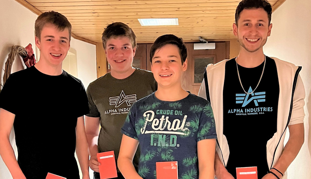 Vier junge Musiker machen bei der Musikgesellschaft mit