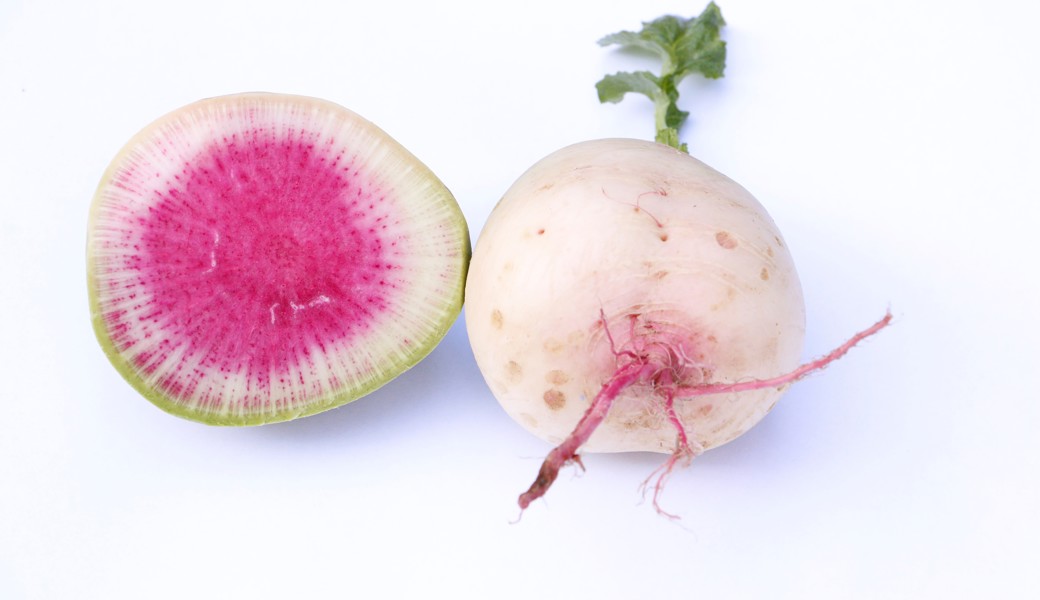 Aber das sind nicht die einzigen ungewöhnlichen Rettiche. Die Sorten Watermelon oder Red Meat machen optisch viel her. In jungem Zustand sind diese runden Rettiche aussen weiss und innen knallrot. Später, wenn sie die Grösse eines Tennisballs haben, sind sie aussen grünlich und innen rosa wie eine Wassermelone. Mit ihrem dekorativen Aussehen werten sie jedes kalte Plättli optisch auf. Sie ertragen leichte Fröste – wer im Frühherbst gesät hat, wird bis Ende Jahr ernten können. Wer noch nicht gesät hat, kann den Anbau im frühen Frühjahr wagen. Der (Hitze-) Sommer behagt diesen scharfen Gewächsen dagegen weniger.