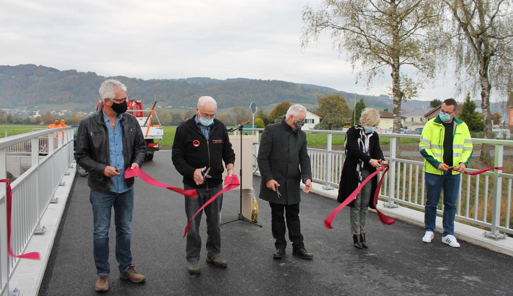 Gemeindepräsident Roland Wälter hatte den Mitgliedern des «runden Tischs», der den Brückenbau seit fünf Jahren begleitet, Wurst und Brot zur Einweihung versprochen. Seither hat die pandemische Gefahr aber zugenommen, die Feier fand ohne Imbiss statt. Im Gegensatz dazu hat seine Widnauer Amtskollegin Christa Köppel Wort gehalten: Sie hatte mit Wälter eine Flasche Champagner gewettet, dass die Brücke nicht mehr in dieser Legislatur eröffnet wird. «Die Wette verlor ich gerne», sagte sie und brachte die Wettschuld gleich mit.Köppel sagt, dass die freundnachbarschaftlichen Beziehungen ohne Diskussion über die Sternenbrücke für sie gar nicht vorstellbar seien. Die Brücke liegt auf Diepoldsauer Gemeindegebiet, ist geografisch aber eher Widnau zugehörig. Diepoldsau ist für den Unterhalt der Brücke zuständig, gewisse Aufgaben wie der Winterdienst werden aber gegen Bezahlung von der Gemeinde Widnau übernommen.Die 26 m lange und 4,80 Meter breite Brücke mit einer Nutzlast von 19 Tonnen ist zwar in «Rekordzeit» (Wälter) gebaut worden, aber erst nachdem hohe politische Hürden übersprungen worden sind. Bauingenieur Victor Bigger erinnerte daran, dass die Sternenbrücke bereits 2000 als baufällig klassifiziert wurde. Vor 16 Jahren scheiterte das erste Projekt an Einsprachen. Vor fünf Jahren wurde der «runde Tisch» mit Anwohnern gebildet. Seither sind volle 46 Brückenprojekte geprüft worden. «Was lange währt, wird endlich gut», zitierte Wälter ein Sprichwort aus dem Jahr 1708. So lange hat die Ersetzung der 123 Jahre alten Brücke dann doch nicht gedauert.Die Sternenbrücke wird bald alleinstehend sein: Die nördlich gelegene, bei Velofahrern beliebte Brücke wird in den nächsten Wochen abgerissen.