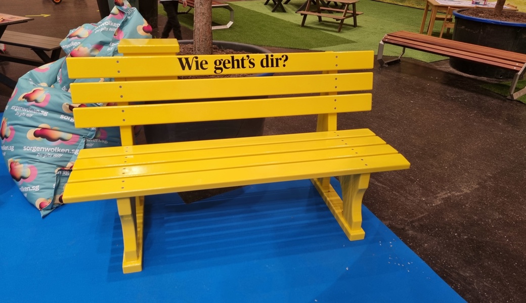 Mit dem auffälligen gelben Sitzbänkli mit der Aufschrift «Wie geht's dir?» werden die Menschen dazu eingeladen, einen Moment der Ruhe zu finden, sich miteinander zu unterhalten und über ihr Wohlbefinden zu sprechen. An der Rückseite des Bänklis ist zudem eine Box angebracht, in der Broschüren der Kampagne «Wie geht's dir?» mit konkreten Informationen und Tipps zur Stärkung der psychischen Gesundheit zu finden sind.