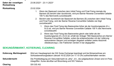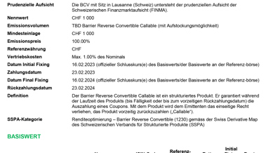 Eine Haftung für allfällige Schäden, die direkt oder indirekt mit den vorliegenden Informationen zusammenhängen, ist ausgeschlossen. Wir weisen Sie darauf hin, dass es sich vorliegend um risikobehaftete Finanzinstrumente handelt, aus denen im schlimmsten Fall ein Totalverlust resultieren kann. Weitere Unterlagen (wie Risikobroschüre, Prospekte und/oder Basisinformationsblätter, sofern vorhanden) können Sie gerne bei uns beziehen.
