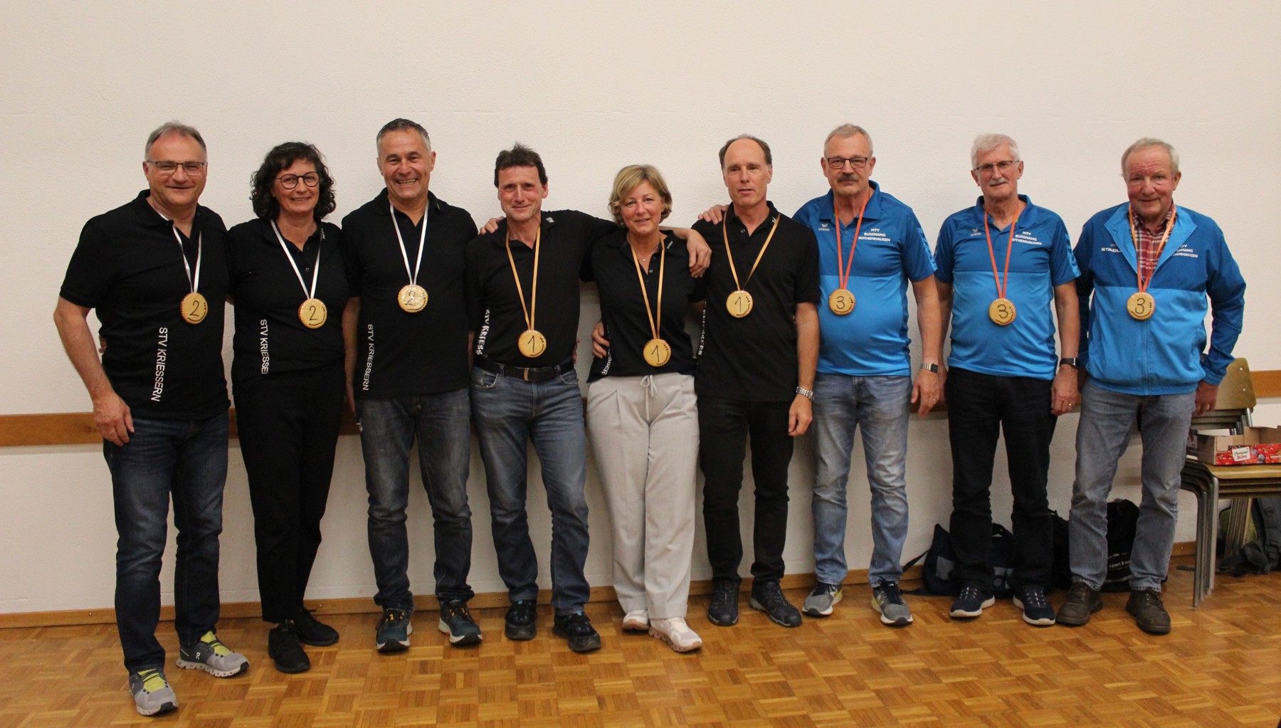 Nebst den Kriessner Turnerinnen und Turner waren auch sechs auswärtige Vereine am Start. Der Turnverein Wildhaus und Marbach waren mit je einer Mannschaft vertreten, aus Altstätten und Uznach nahmen zwei und aus Widnau drei Gruppen teil. Mit der weitesten Anreise kam der Turnverein Bussnang-Rotenhausen gleich mit vier Gruppen nach Kriessern. Auch der organisierende STV Kriessern war mit drei Mannschaften bei den Senioren 55+ und fünf Mannschaften in der Kategorie 35+ am Start.