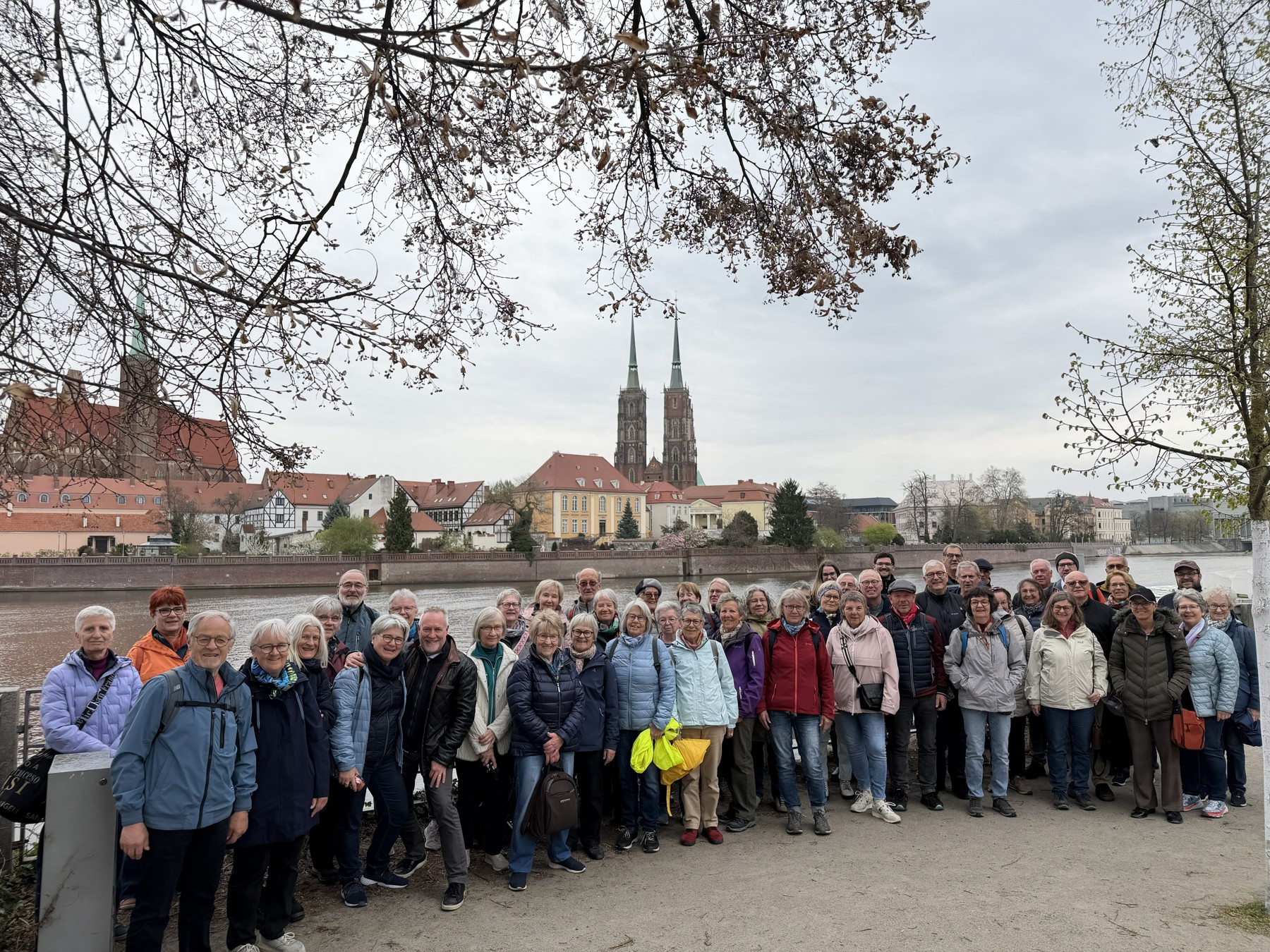 Weiter ging es über Görlitz nach Breslau. Eine Stadtführung mit Schifffahrt auf der Oder sowie Zeit zur freien Verfügung prägten den Aufenthalt. Besonders beliebt waren die Breslauer Zwerge, kleine Bronzefiguren mit Ursprung in einer Oppositionsbewegung der 1980er-Jahre.