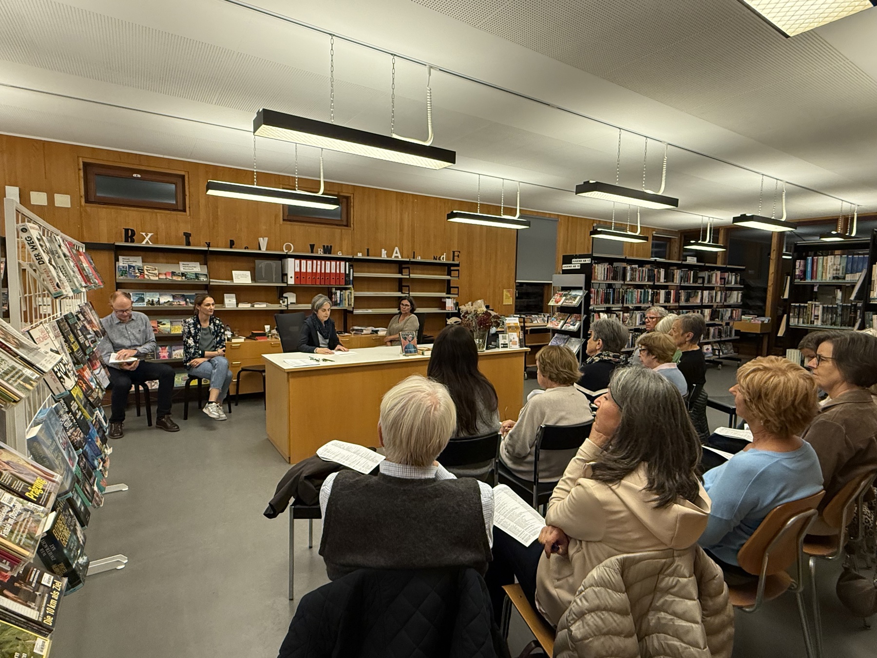 Beim alljährlichen «Bücherherbst» stellte das Bibliotheksteam ausgewählte Neuerscheinungen vor und weckte so die Lust am Lesen. Der anschliessende Apero lud zu angeregten Gesprächen ein und es wurde freudig in den neuen Medien gestöbert.