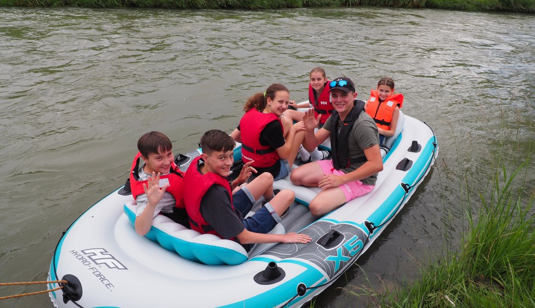 Beim Kraftwerk Montlingen wurden je zwei Schlauchboote und Kanus gewassert. Im Gegensatz zur Arche Noah wurden mit Ausnahme von ein paar lästigen Mücken keine weiteren Tiere mehr an Bord genommen - und die Sintflut blieb glücklicherweise aus. Beim Tratthof in Balgach setzte die fröhliche Schar zur Landung an und genoss die feinen Grilladen von Mario Fiorini.