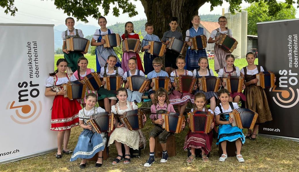 Musikalisch unterhalten wurden sie von 21 Schwyzerörgelispielenden der Musikschule Oberrheintal. Unter der Leitung von Priska Seitz gaben sie ein Ständchen.