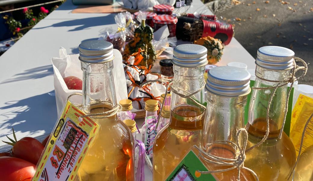 Natürlich durfte das Bernecker Kräutersalz nicht fehlen. Selbstverständlich hatte es auch Gemüse und Früchte zu kaufen. Die Kinder durften sich über die zahlreichen Besuchenden freuen, welche den offenen Schulgarten besuchten.
