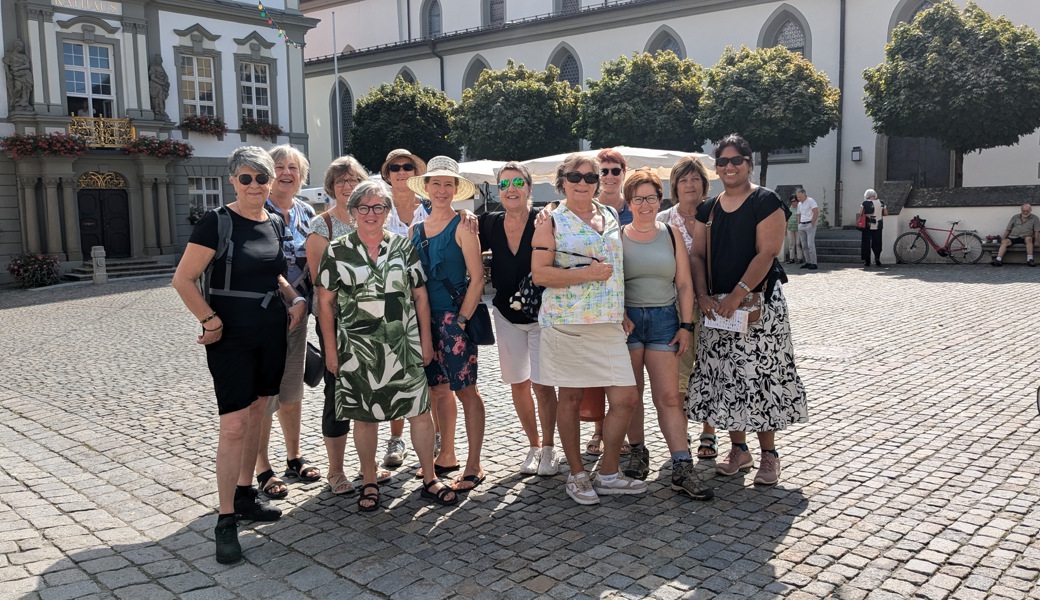 Nach einem reichhaltigen Frühstücksbuffet ging es mit dem Bus nach Wangen im Allgäu zur Landesgartenschau. Auf 46 Hektar wurde die stadtnahe Umgebung in ein Naherholungsgebiet umgewandelt. Die Turnerinnen spazierten durch die verschiedenen Anlagen. Beim Basketballfeld liess sich die Versuchung nicht widerstehen, eine Runde zu spielen. Nach dem Picknick am Ufer der oberen Arge folgte eine Erfrischung mit einem Fussbad im Fluss. Danach gab es ein von einer Turnerin offeriertes BirnenSecco-Cüpli. Nun stand wieder eine sportliche Herausforderung an: Die meisten Teilnehmerinnen erklommen die 113 Stufen des Aussichtsturms, um das Alpenpanorama zu geniessen. Die hochsommerlichen Temperaturen führten dazu, die Ausstellung zu verlassen und im schönen Städtchen Wangen ein spendiertes Eis zu geniessen, bevor die Rückreise mit dem Zug angetreten wurde.