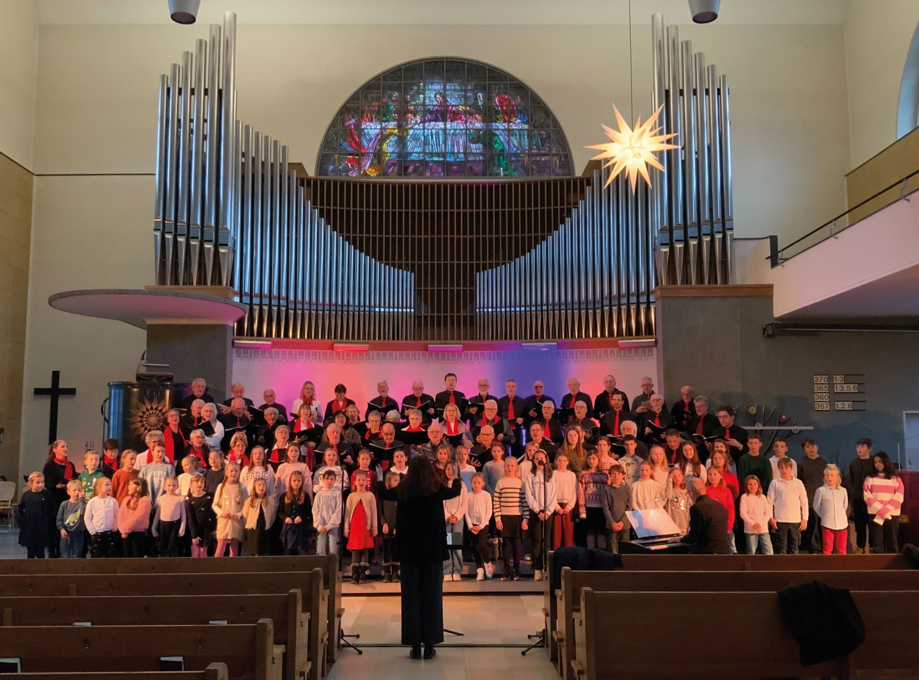 Anschliessend fanden sich die Mitwirkenden wieder zu einem Gesamtchor zusammen und gaben «Happy Xmas – War Is Over», von John Lennon und Yoko Ono zum besten, bevor «Oh du fröhliche» gemeinsam mit dem Publikum den feierlichen Schlusspunkt setzte. Eine begeisternde Stimmung im Publikum und ein lang anhaltender Applaus waren der verdiente Lohn für ein überzeugendes und vielseitiges Konzert.