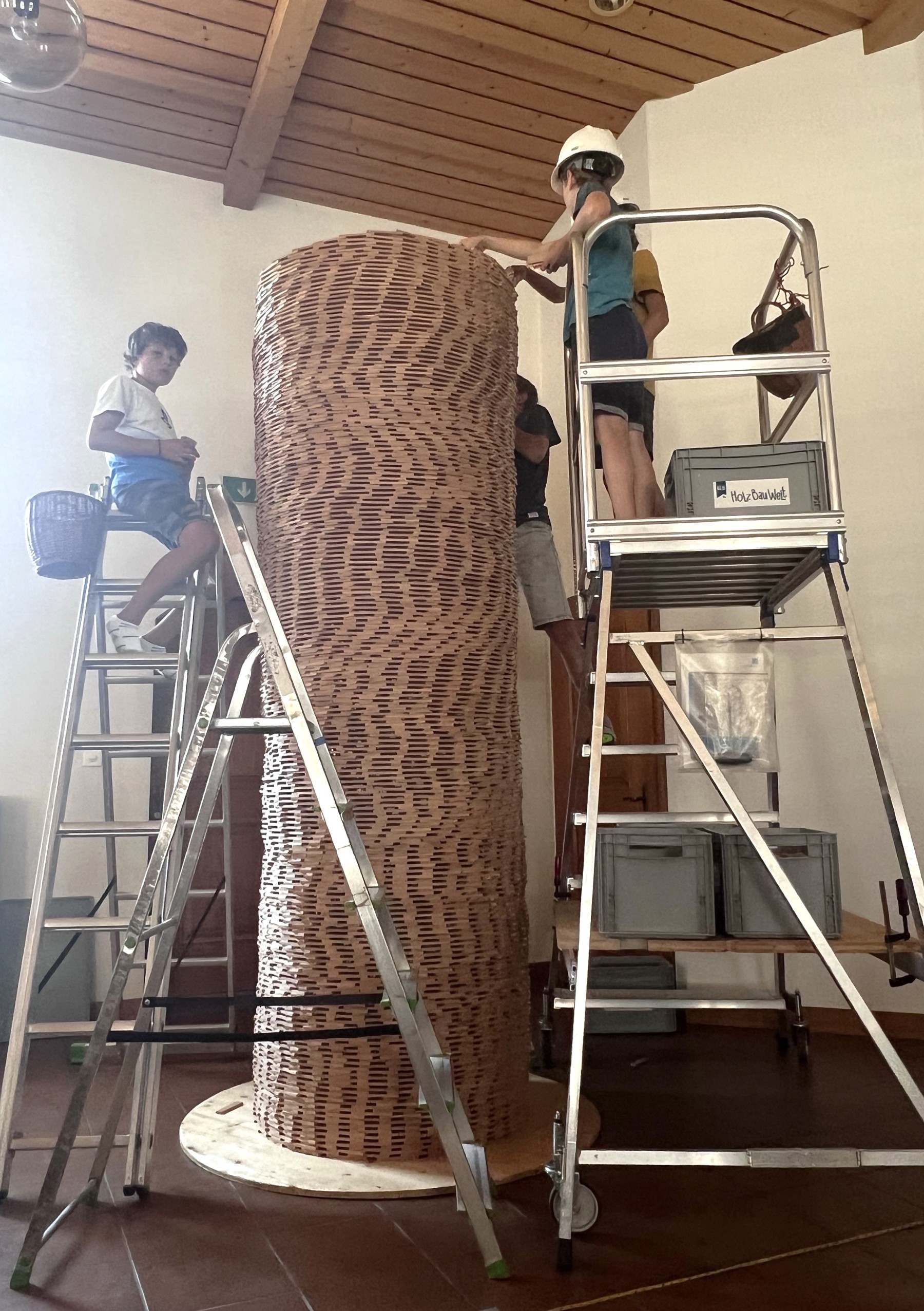 Die Kinder waren mit grossem Eifer dabei und es entstanden mit Fantasie und Geschicklichkeit grossartige Holzbauwerke. Gemeinsam wurde ein grosser Turm gebaut, der eine Höhe von 3,80m erreichte. Die Kinder hörten ausserdem eine biblische Geschichte, sangen zusammen und bekamen einen Zmittag sowie Zvieri.