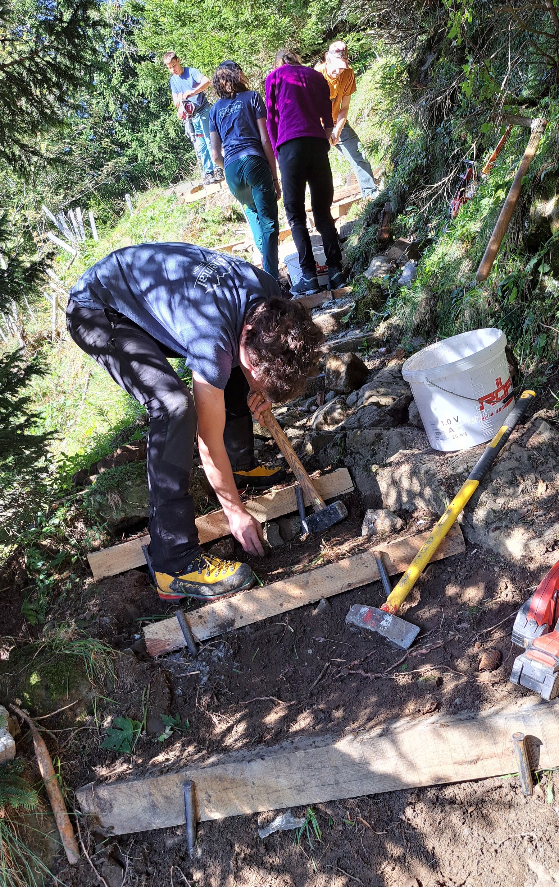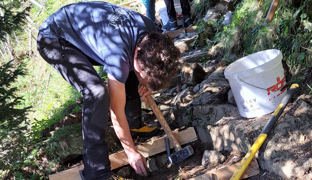 Am Freitagabend begann der Aufstieg zur Hütte, am Samstagmorgen ging es an die eigentliche Arbeit. Nach einer kurzen Einführung begannen die Teilnehmenden mit der Sanierung. Im Rahmen der Arbeiten wurden alte Holzbretter und Metallstäbe entfernt und durch neue ersetzt.