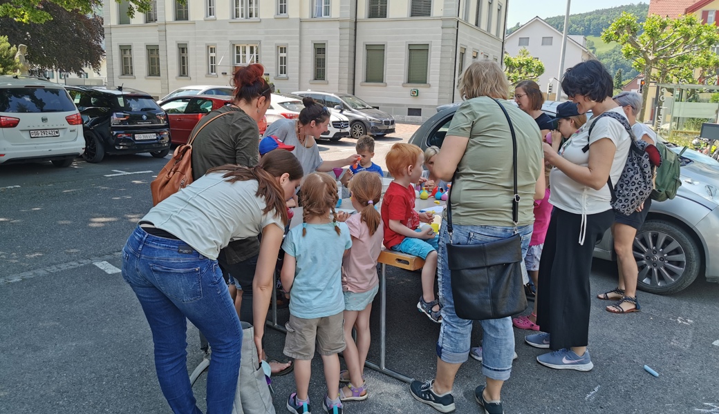 Danach gings ans Verzieren, wobei der Fantasie keine Grenzen gesetzt waren. Zwischendurch konnte man sich mit leckerem Kuchen und einem feinen Sirup stärken. Am Schluss konnte jedes Kind mit drei Jonglierbällen und einem Wurfball nach Hause gehen.