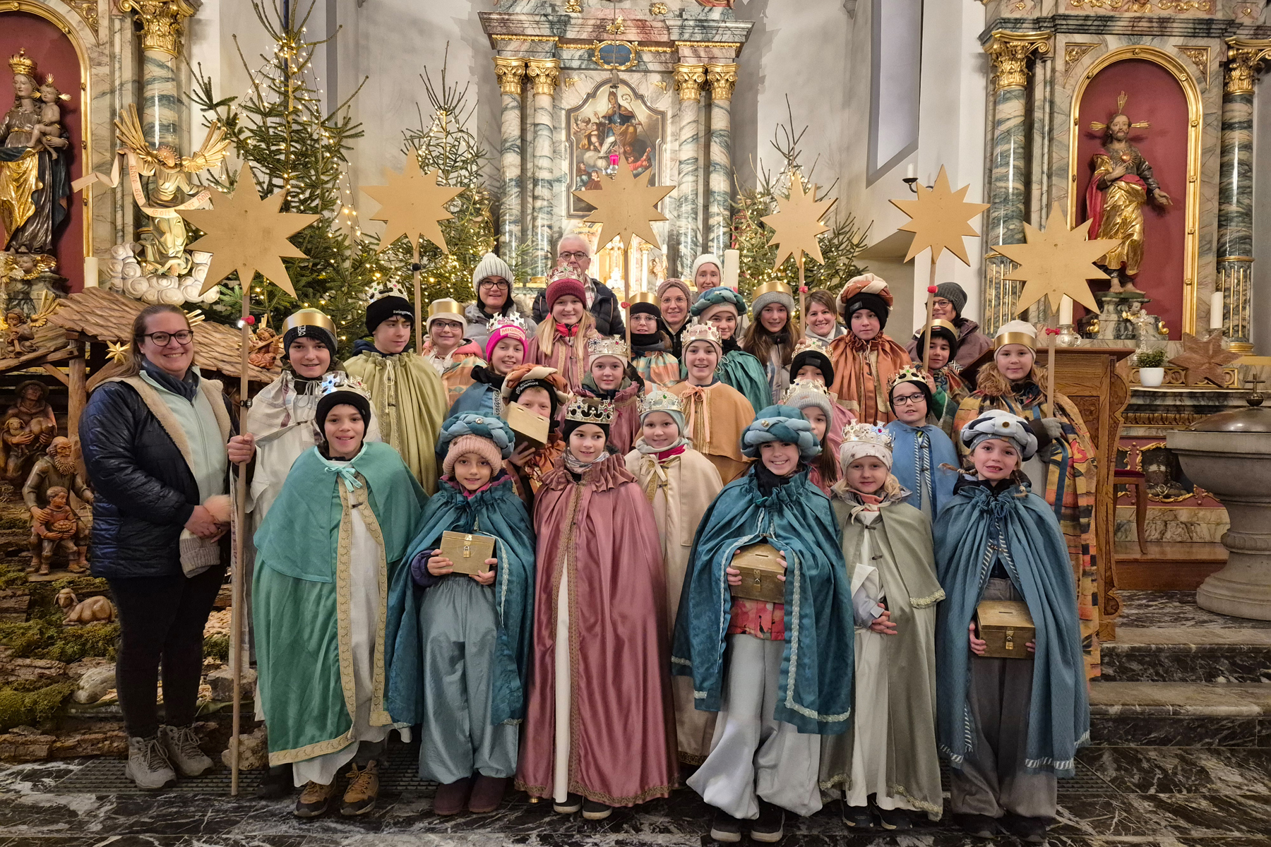 Kronen auf dem Kopf, Sterne in der Hand und viel Herz im Gepäck. Die Sternsingeraktion 2026 erzeugte in Rüthi-Lienz strahlende Momente. Unter dem Motto «Schule statt Fabrik» zogen Kinder und Jugendliche durch die Pfarrei.