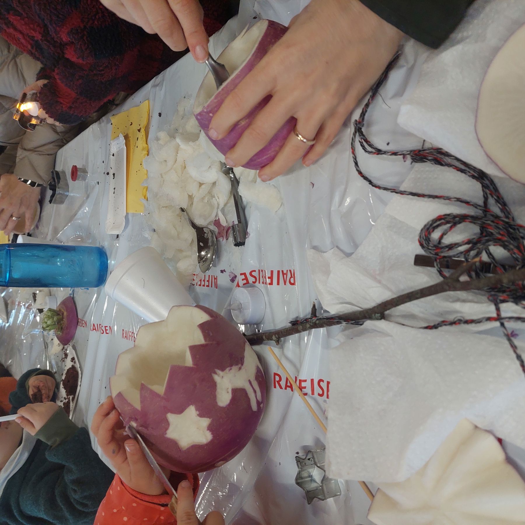 Rund 130 Räben wurden kunstvoll geschnitzt. Nach dem Schnitzen liefen alle beim Umzug mit, der von der Schellengruppe Bergfreunde angeführt wurde. Den ganzen Abend verköstigten sich die Familien an der Festwirtschaft mit Wienerli, einer selbstgemachten Kürbissuppe und selbstgebackenen Kuchen. Auch Punsch, Glühwein und vieles mehr mundete den Gästen.