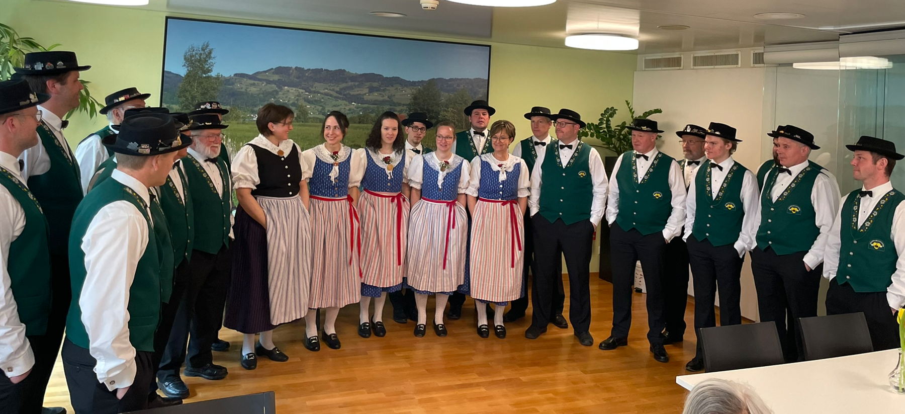 So auch dieses Jahr: Am 1. März sang der Jodlerklub auf zwei Stockwerken des Spitals seine Lieder und Jütze vor dankbarem und sichtlich gerührtem Publikum. Anschliessend wurden die Bewohnerinnen und Bewohner vom Haus Sonnengarten sowie deren Angehörige in dessen Cafeteria mit weiteren Stücken unterhalten. Nach insgesamt 15 Liedern und einem Imbiss verabschiedete sich der Jodlerklub mit einem herzhaften Jutz.