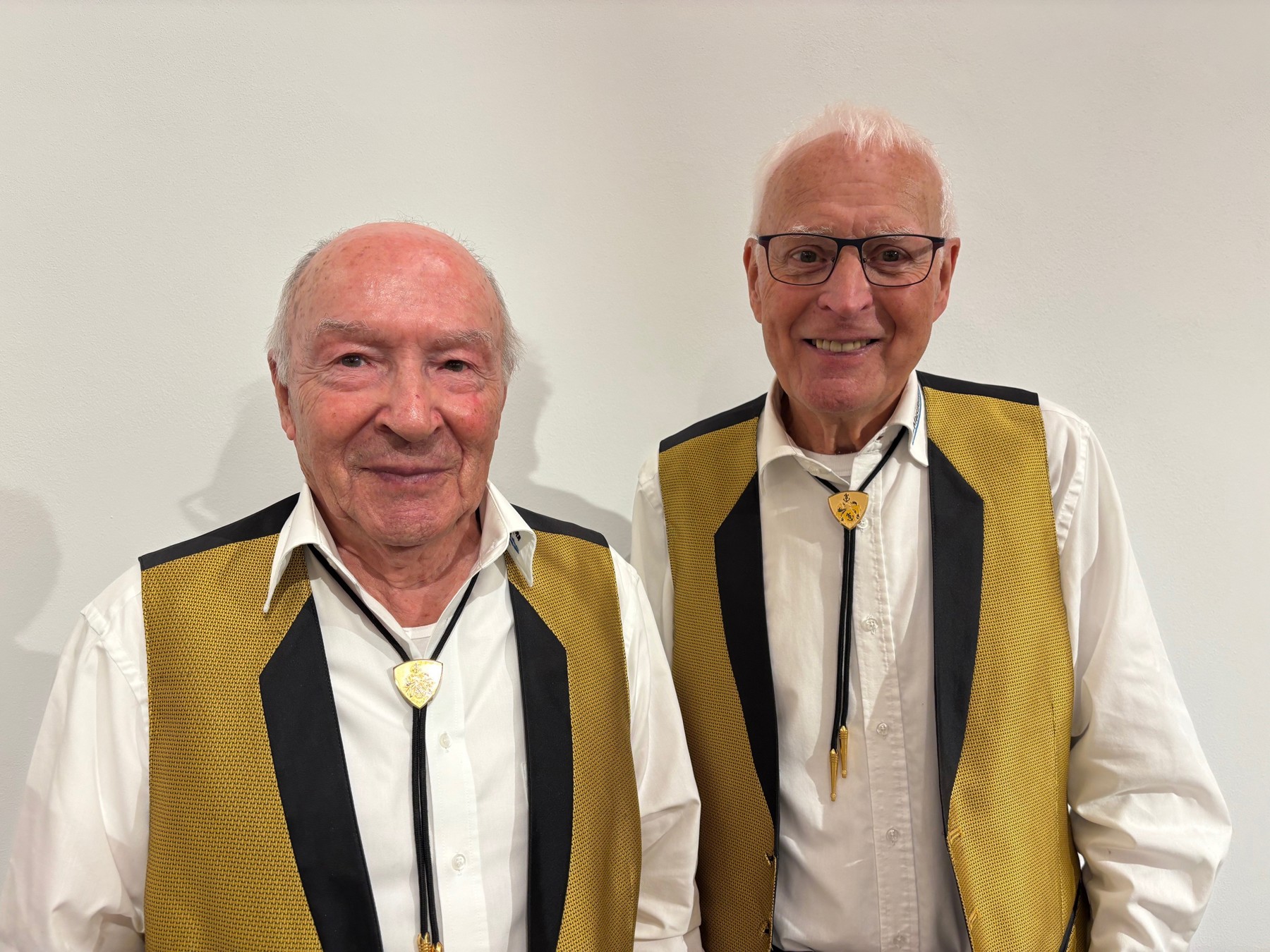 Peter Benz, während 25 Jahren engagiertes Mitglied und langjähriger Aktuar und Gebi Seitz, Gründungsmitglied von 1967, langjähriges Mitglied der Musikkommission und Notenarchivar. Beide haben den Verein über Jahrzehnte nicht nur musikalisch, sondern auch menschlich geprägt. Mit grossem Dank und warmen Worten wurden sie im Kreis der Musikkameraden geehrt.