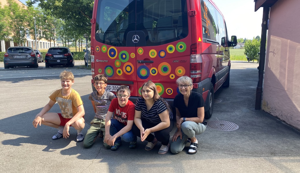 Das farbenfrohe Resultat lässt sich sehen. Die vielen Farben stehen für die Vielfalt der Schülerschaft. Und die Kinder steigen stolz in den von ihnen selbstgestalteten Schulbus.