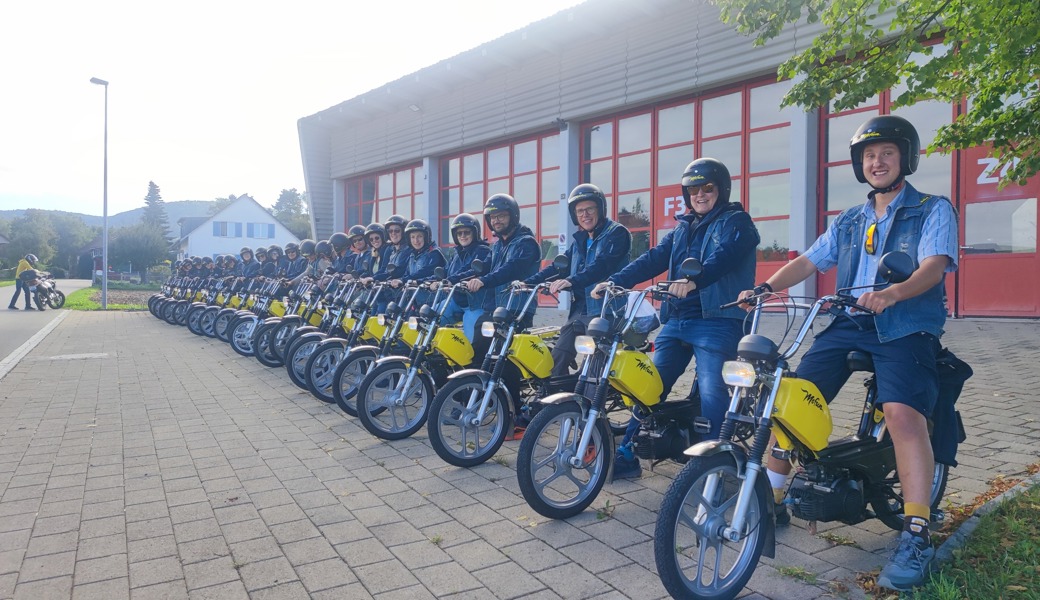 Am Sonntagmorgen war wiederum frühes Aufstehen angesagt und um 8:20 Uhr ging es per Bus nach Gächlingen. Von dort starteten die Mitglieder zu einer mehr als dreistündigen Töfflitour durch das Klettgau. Nach kurzer Erklärung und Einweisung wurden fast 70 km mit dem schnittigen schwarz-gelben Töffli zurückgelegt. Zur Erholung der beanspruchten Muskulatur wurde ein Kaffeehalt mit Gipfeli in Wunderklingen eingelegt. Alle Beteiligten waren begeistert vom Feeling und den wunderschönen Ausblicken während der Fahrt. Nachdem sie in Gächlingen mit Fleisch- und Käseplättli sowie diversen Desserts erneut gestärkt wurden, machten sie sich auf den Rückweg nach Balgach.