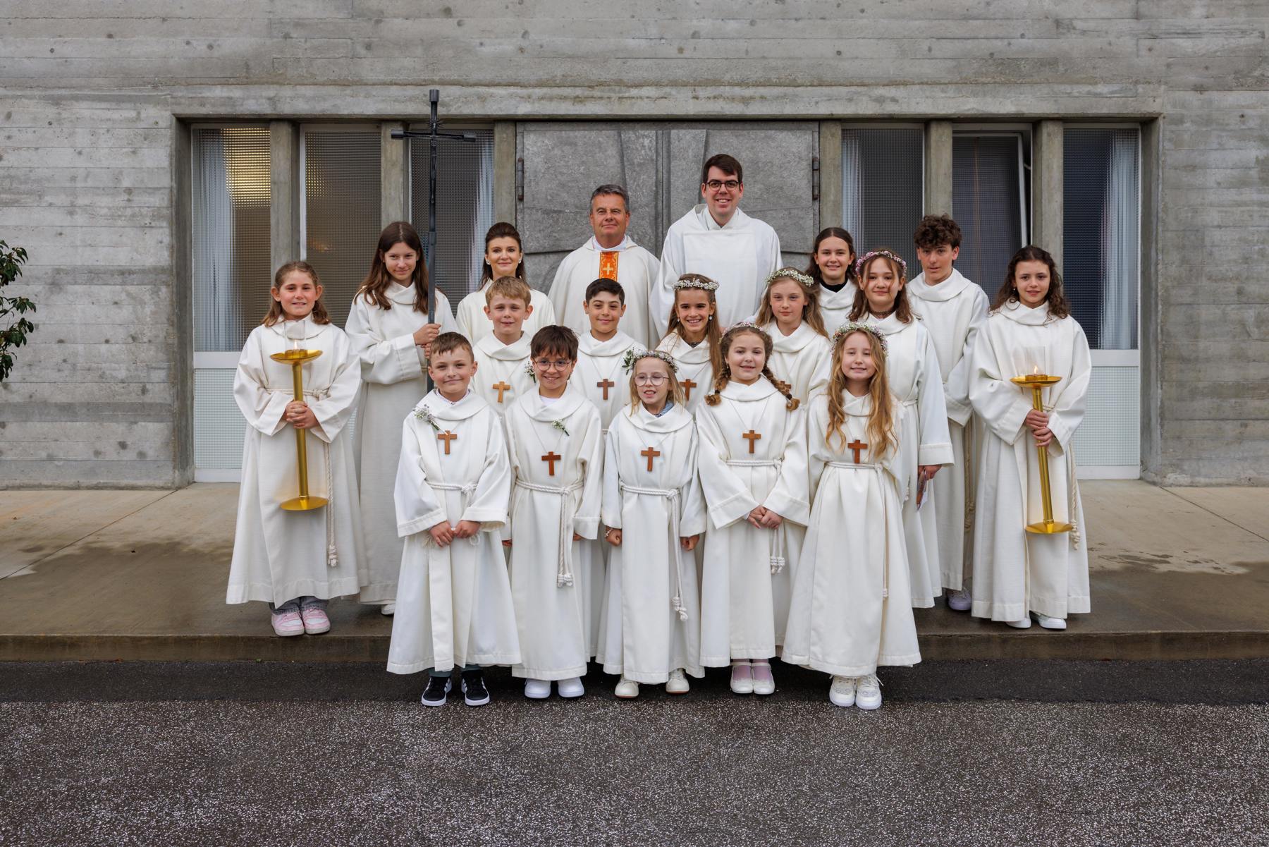 Mit spürbarer Freude und ein bisschen nervös durften die Kinder zum ersten Mal die Heilige Kommunion durch Kaplan Simon Niederer empfangen. Auf diesen besonderen Tag wurden die Kinder von der Religionspädagogin Timea Sekeres mit Unterstützung vom Seelsorger Elias Meile liebevoll vorbereitet. Der Festgottesdienst wurde durch Giona und Vivienne Pileggi am Piano und Gesang und Norbert Klien an der Orgel musikalisch umrahmt.