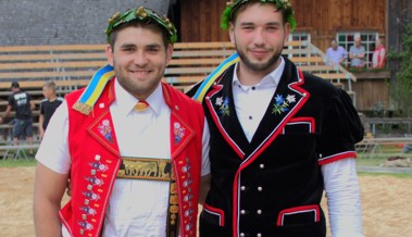 Schwingen Gian Schmid am Kantonalen nahe am Schlussgang Auch Janosch Kobler und Fabian Ulmann vom SK Mittelrheintal holen am St. Galler Kantonalschwingfest in Grabs den Kranz.